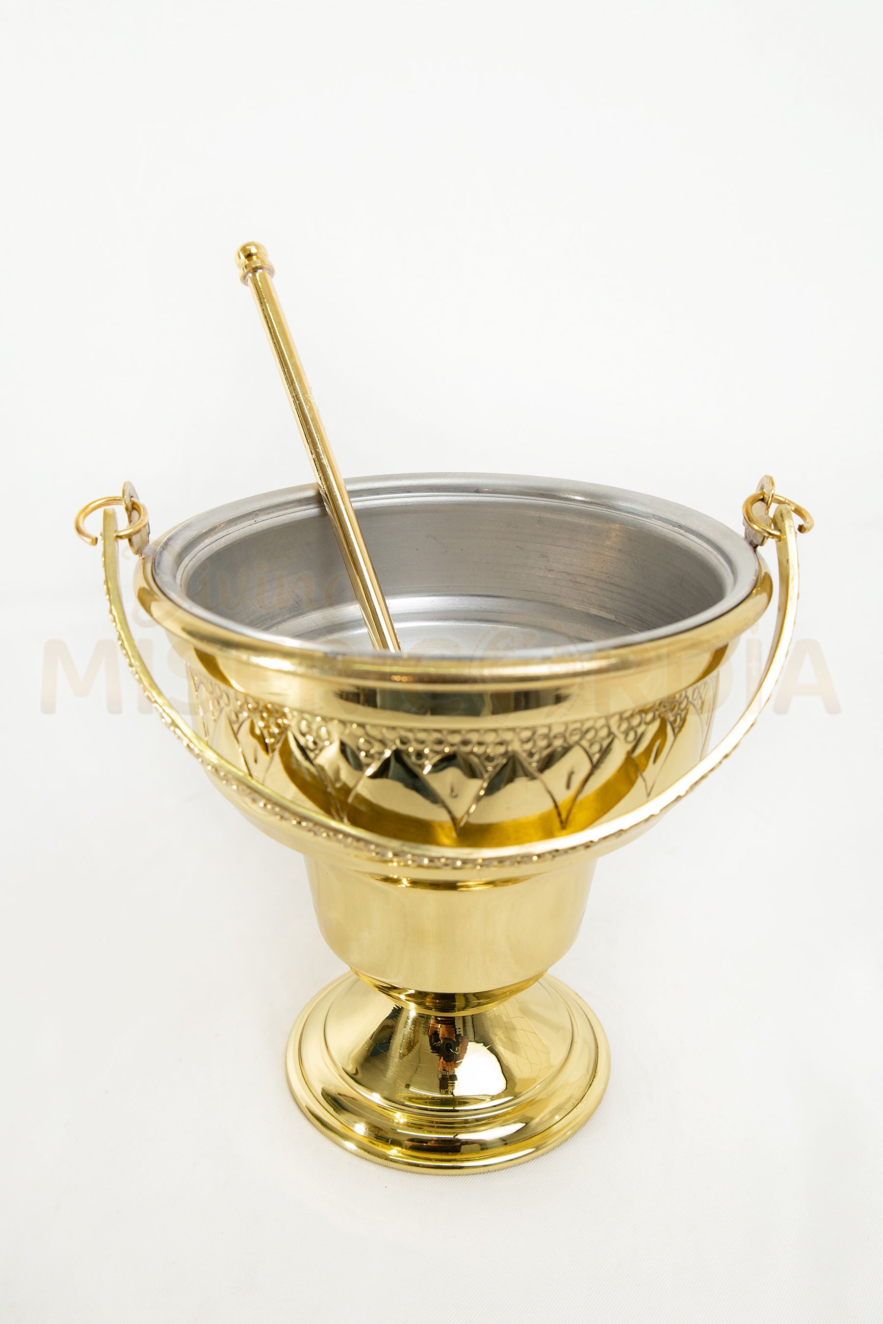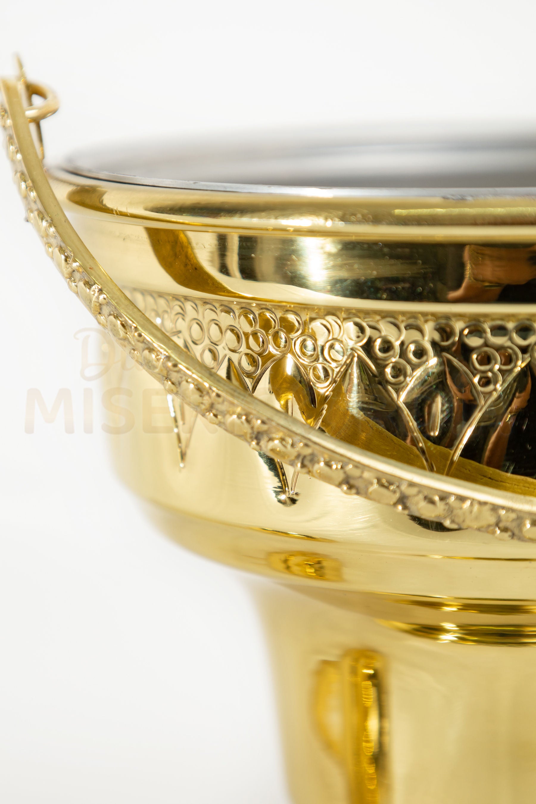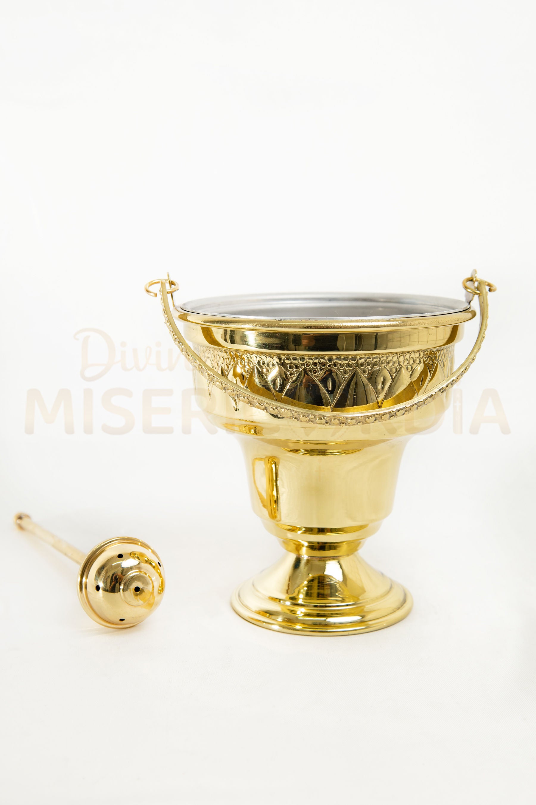 Realza la solemnidad de la liturgia con este elegante acetre con hisopo, elaborado en latón de alta calidad, un material que aporta brillo, resistencia y durabilidad excepcionales. Ideal para la aspersión de agua bendita durante la misa y demás celebraciones litúrgicas, combina tradición, funcionalidad y belleza en un solo accesorio sagrado. ✨