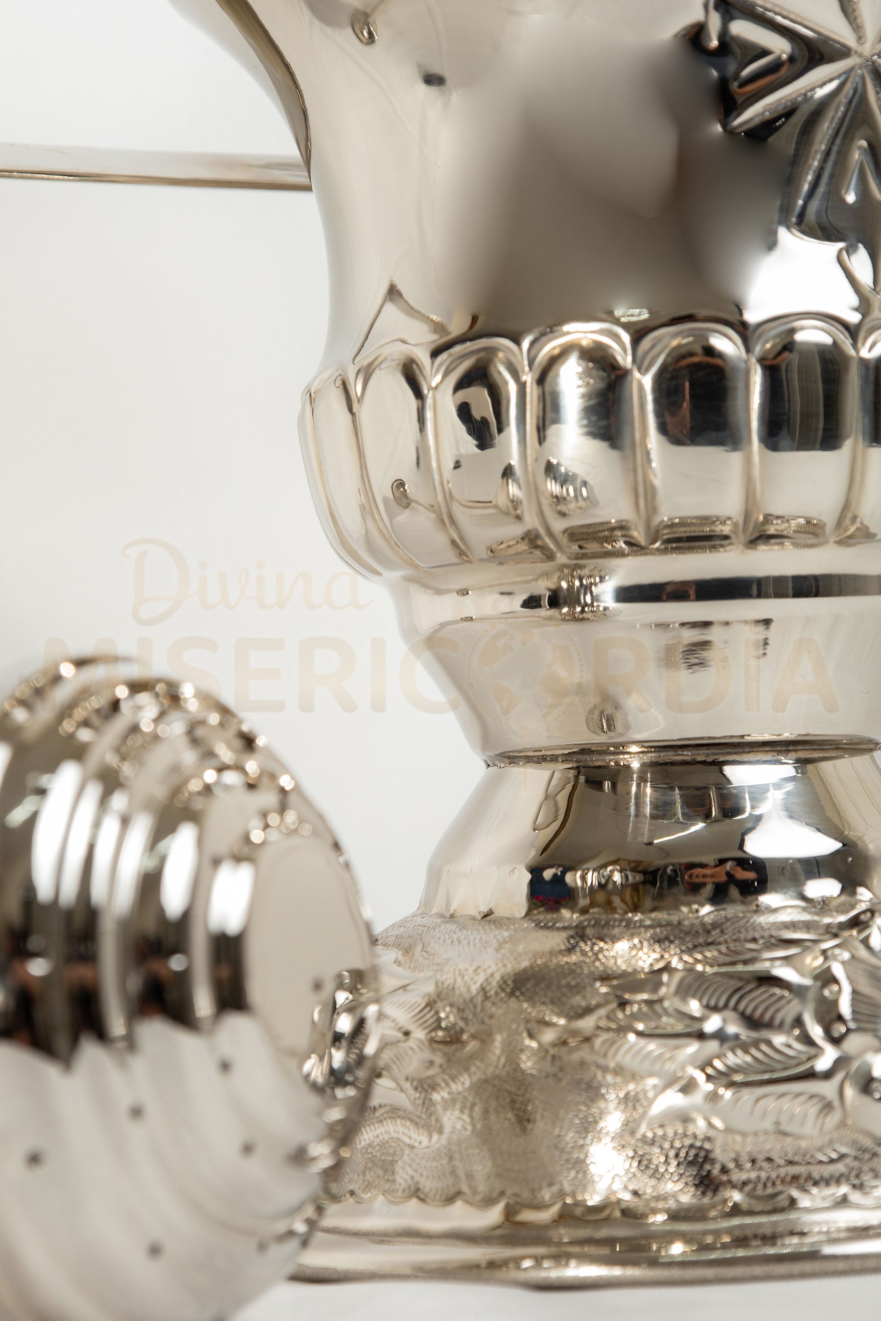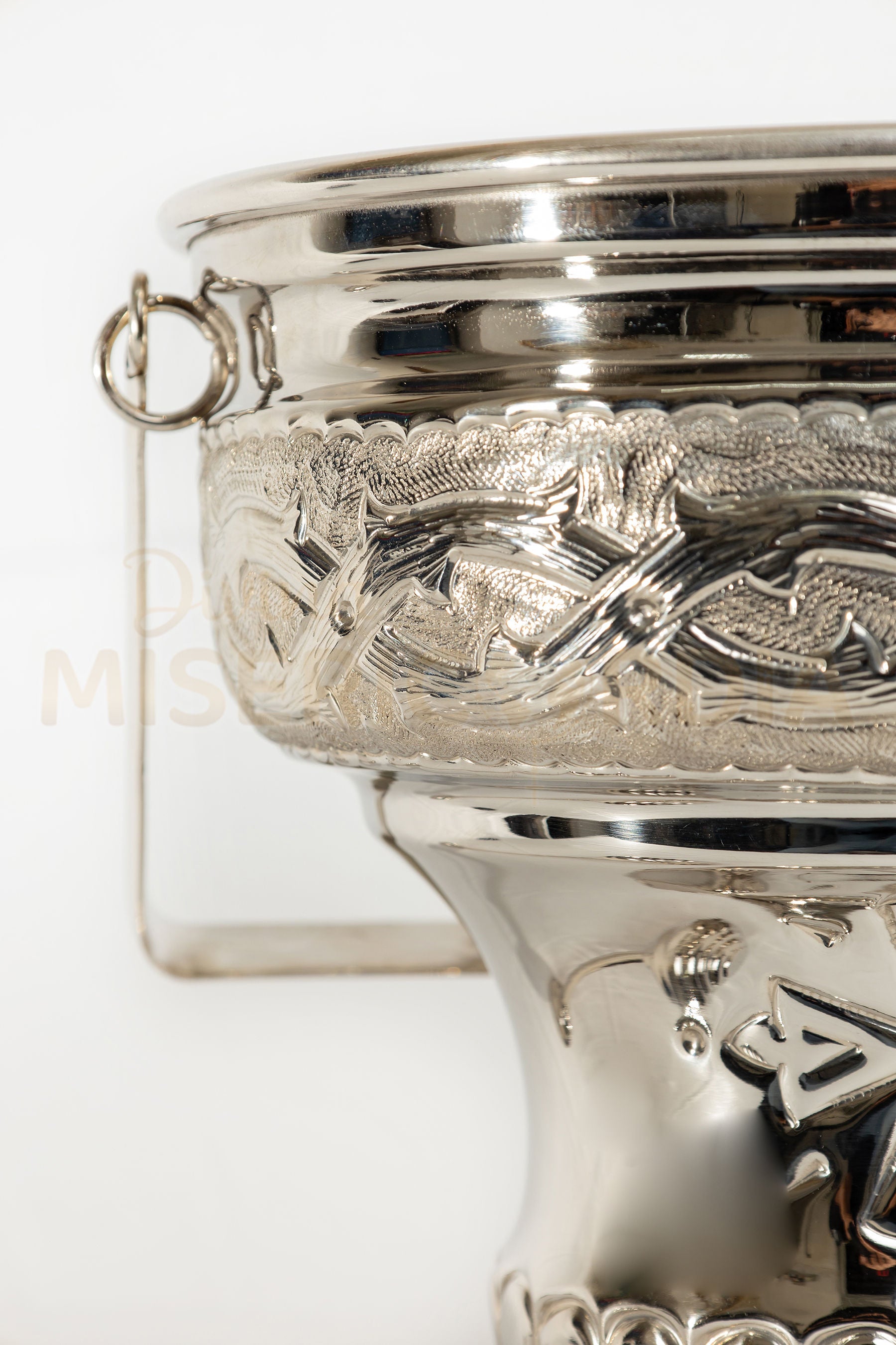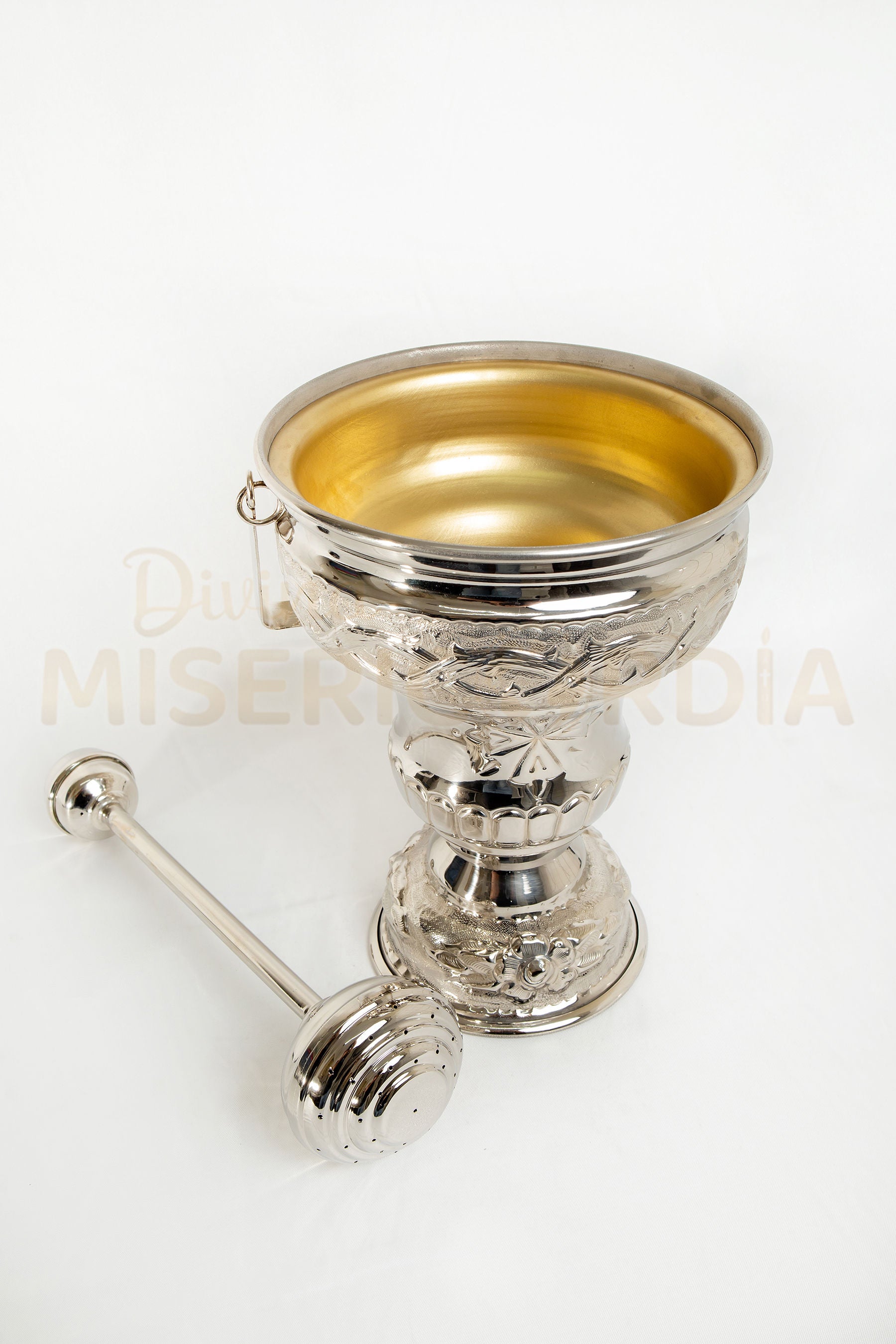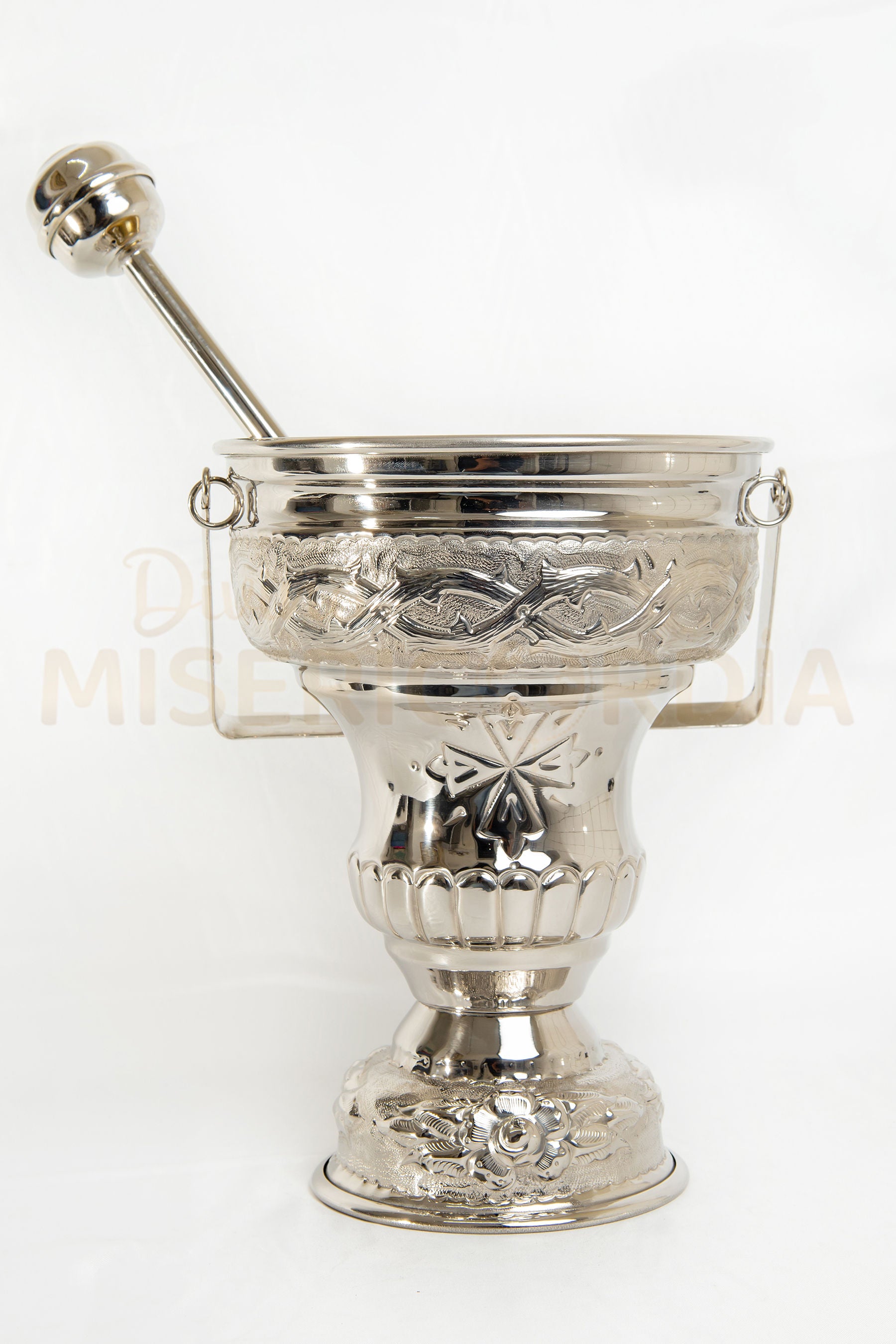 Realza la solemnidad de la liturgia con este acetre con hisopo, elaborado completamente en níquel de alta calidad, que aporta brillo, resistencia y durabilidad excepcionales. Ideal para la aspersión de agua bendita durante la misa, su diseño combina funcionalidad y elegancia, convirtiéndolo en un accesorio litúrgico indispensable.
