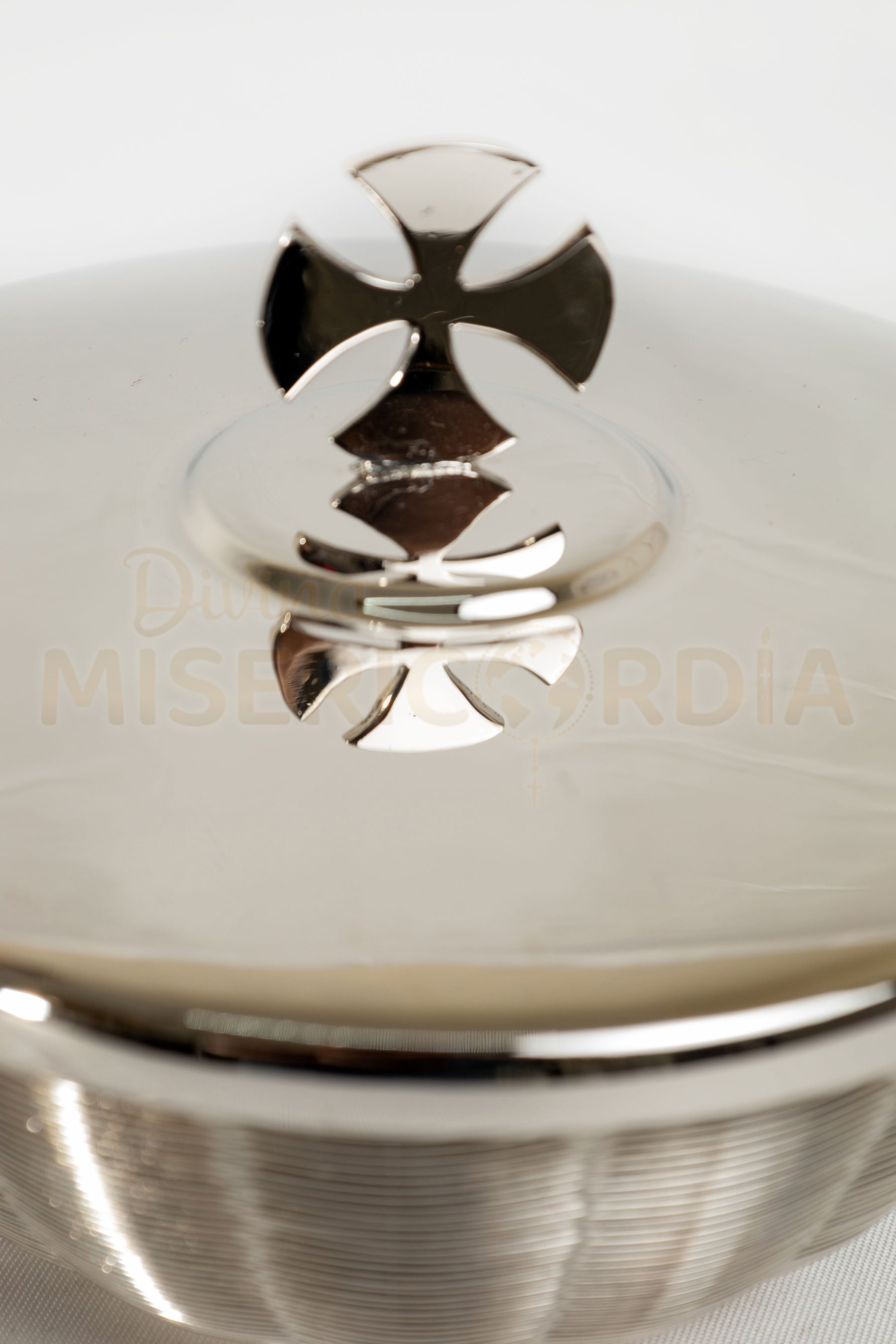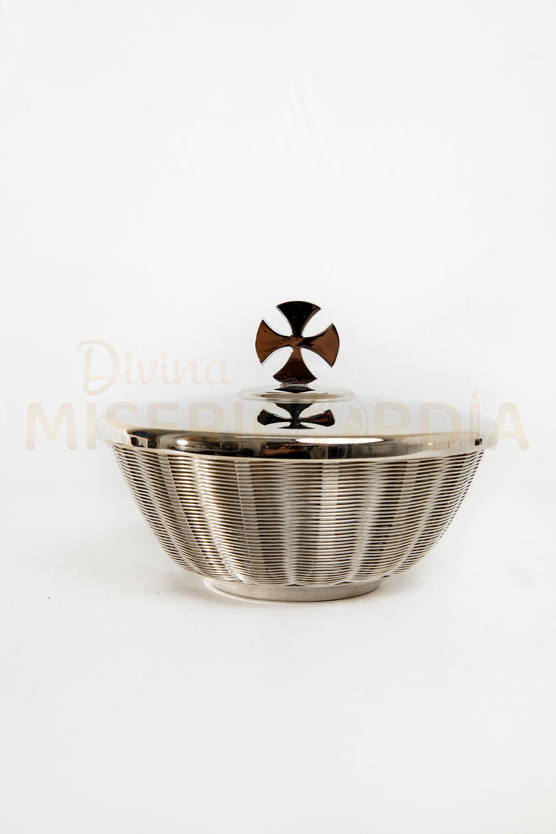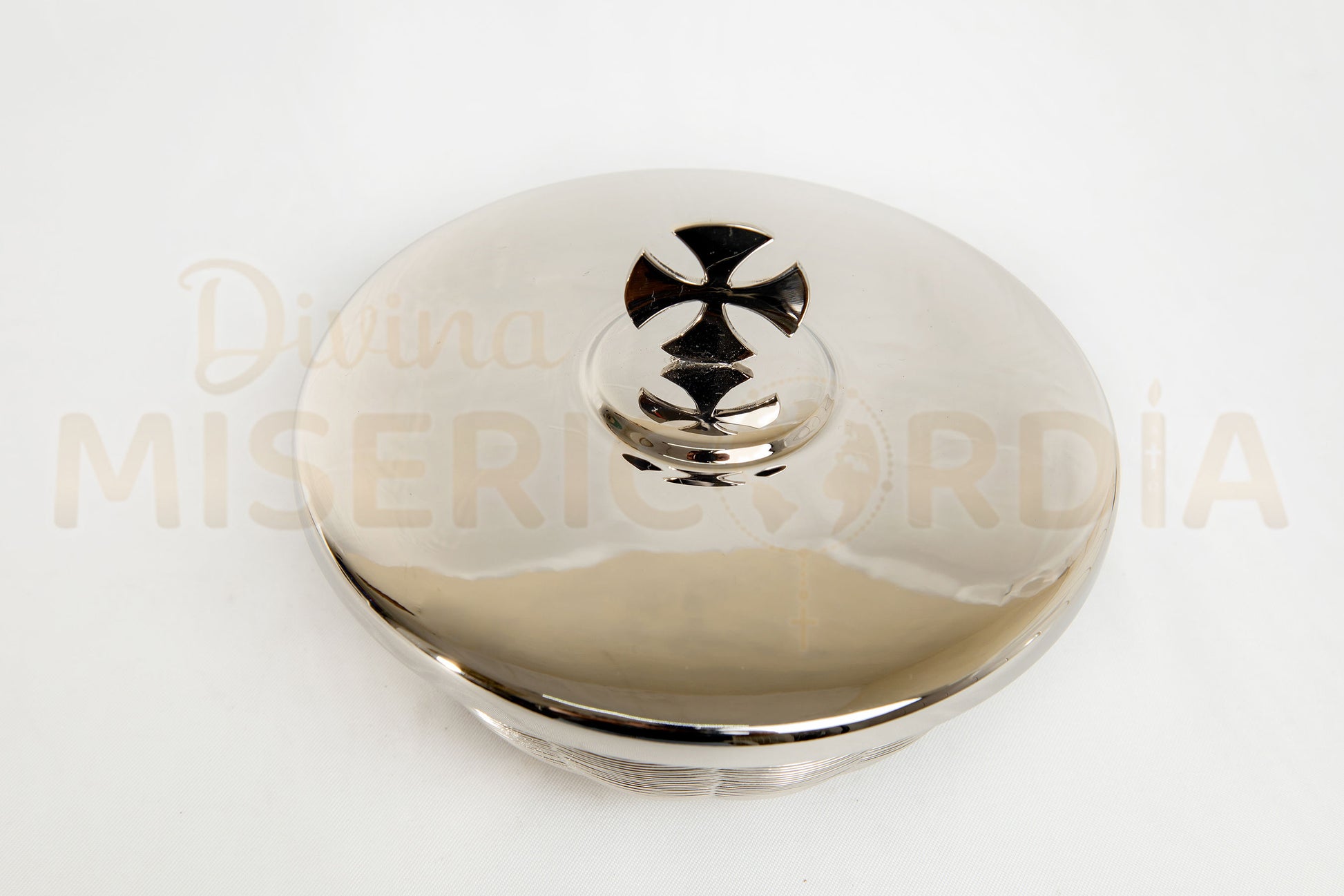 Presenta las hostias consagradas con solemnidad y respeto con este elegante cesto copón, elaborado completamente en níquel de alta calidad, que aporta brillo, resistencia y durabilidad excepcionales. Su diseño refinado lo convierte en un soporte digno para la Eucaristía, ideal para realzar el altar durante la misa.