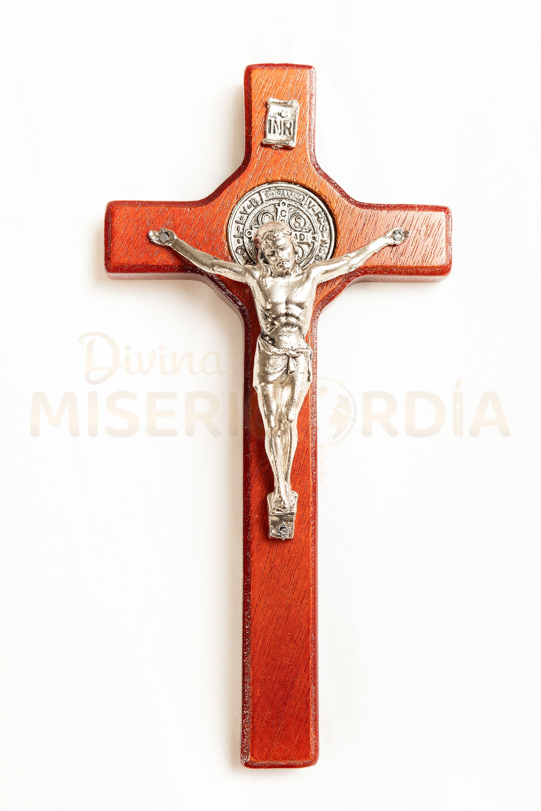 Este crucifijo combina la fuerza redentora de la Cruz con el poder espiritual de la Medalla de San Benito, reconocida como defensa contra el mal, la tentación y todo peligro espiritual. Su tamaño generoso lo convierte en un símbolo visible de fe y protección, ideal para altares, espacios de oración o habitaciones donde se desee mantener cerca la fuerza de Cristo y la intercesión de San Benito.