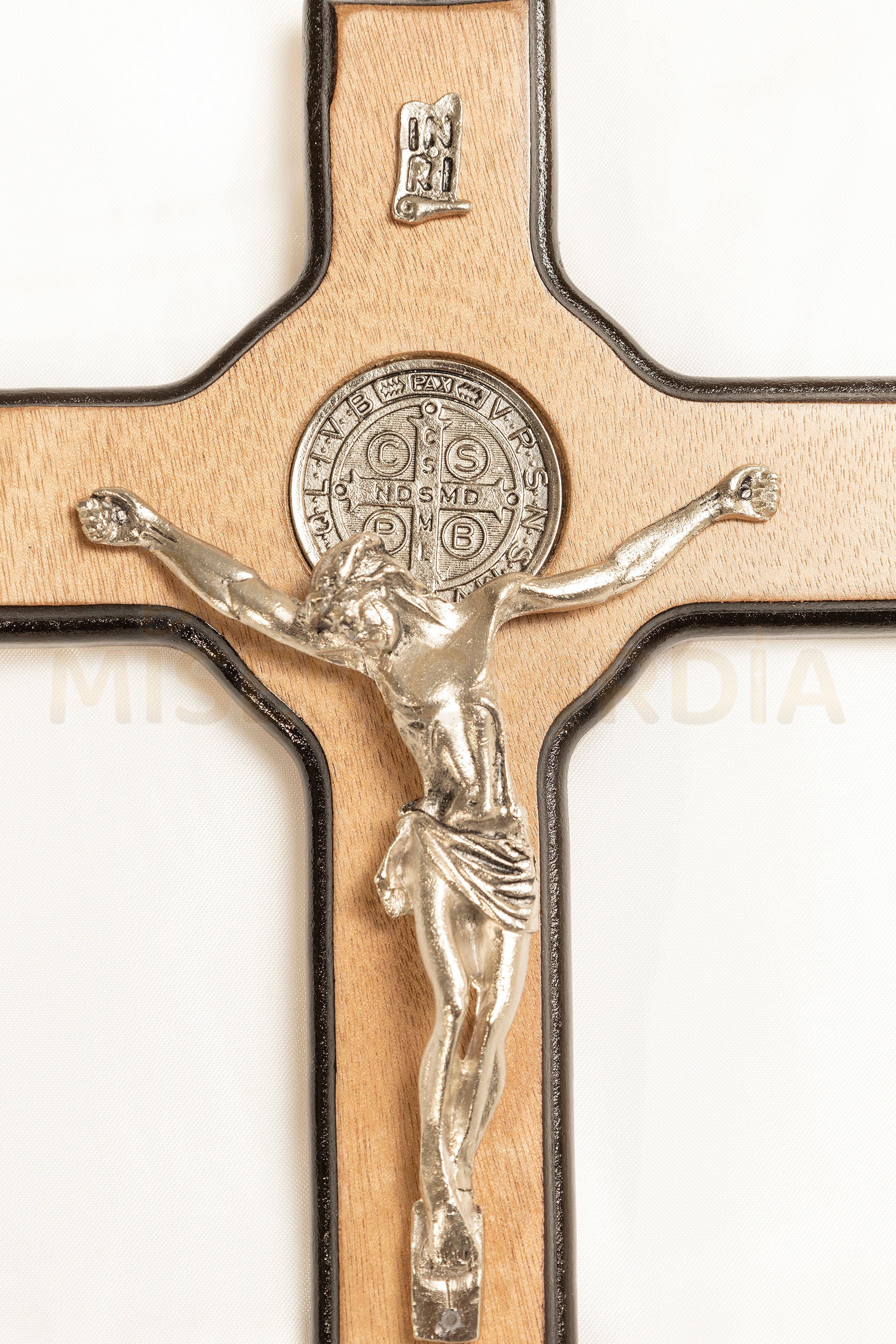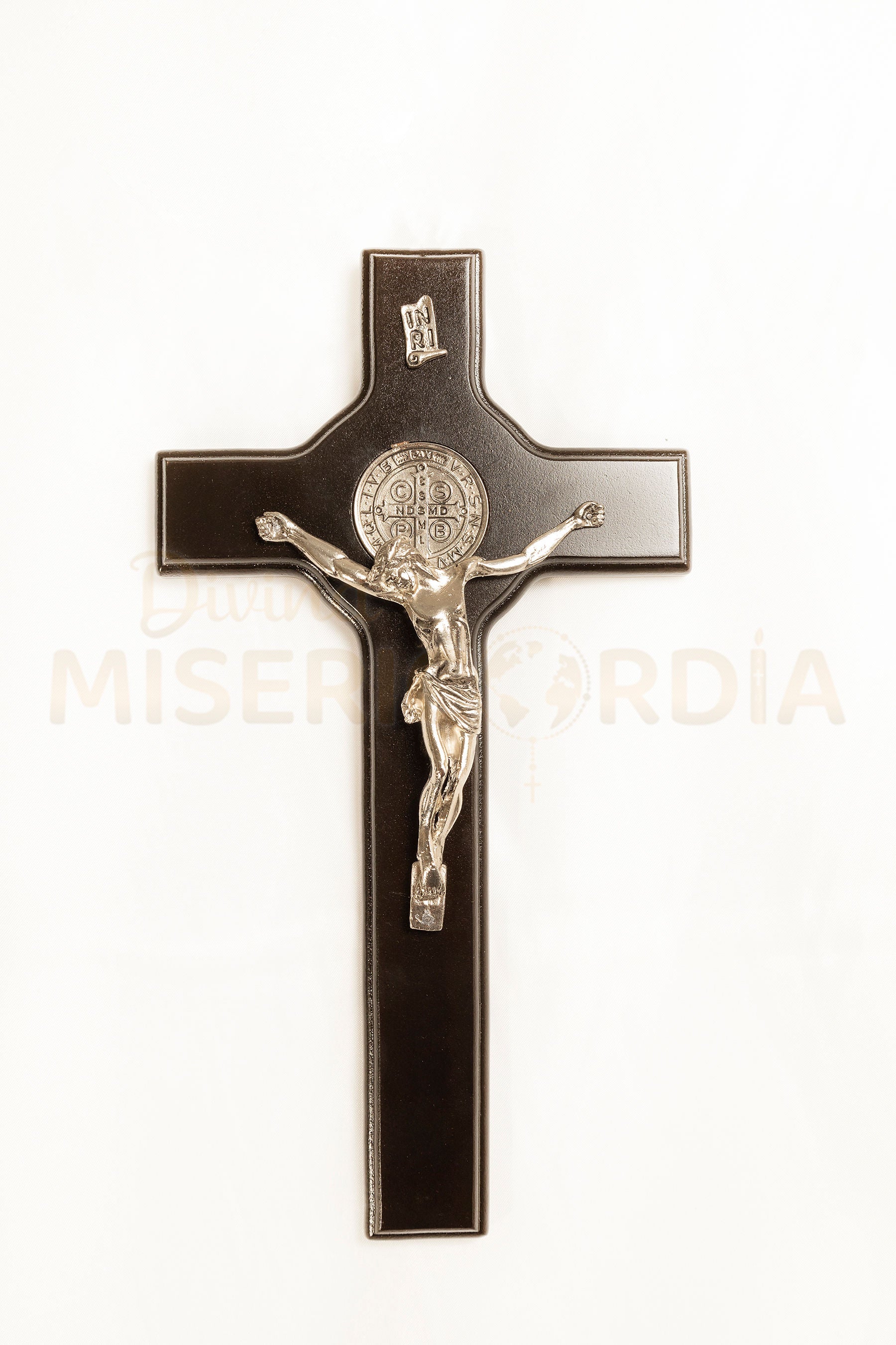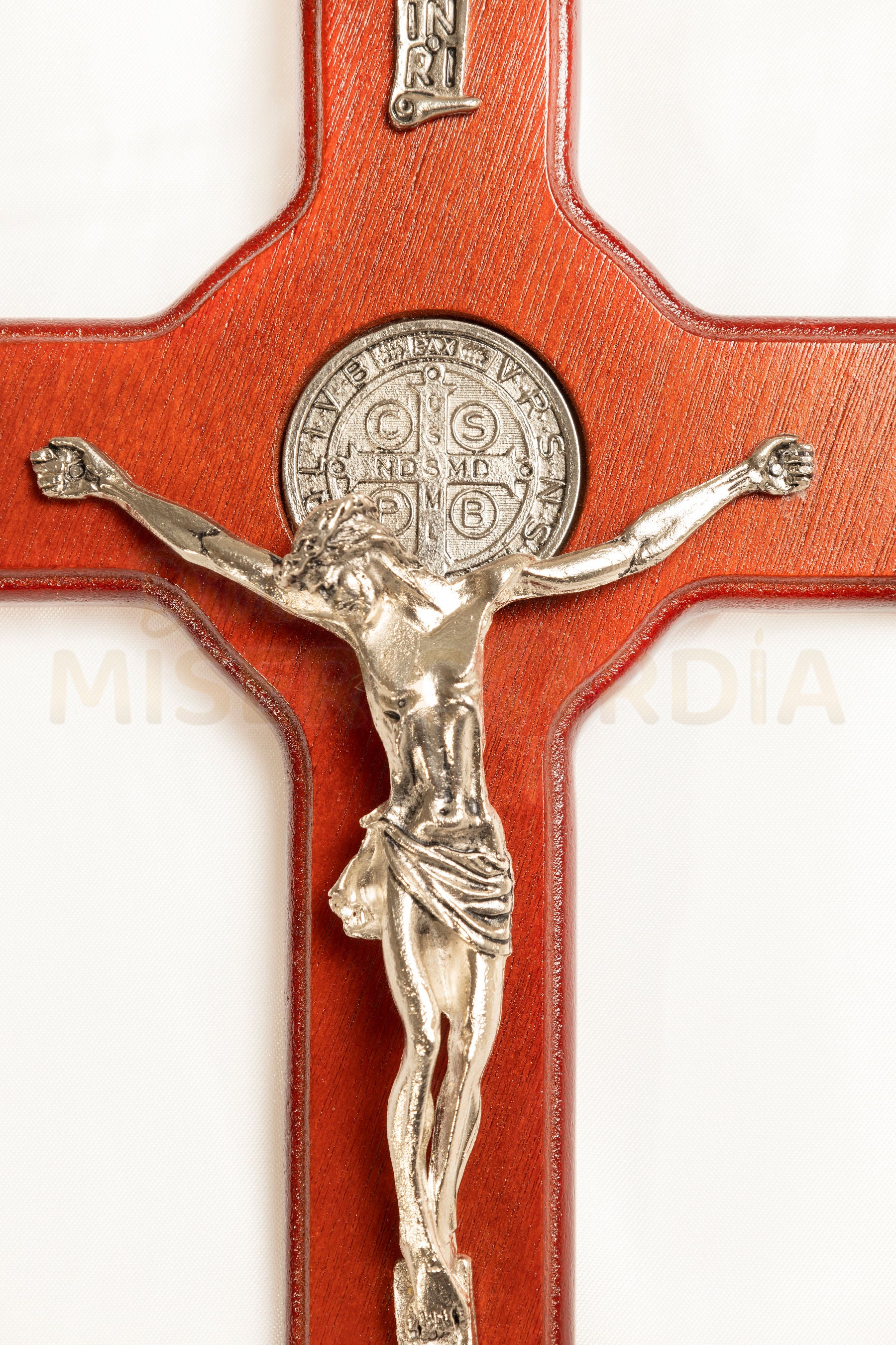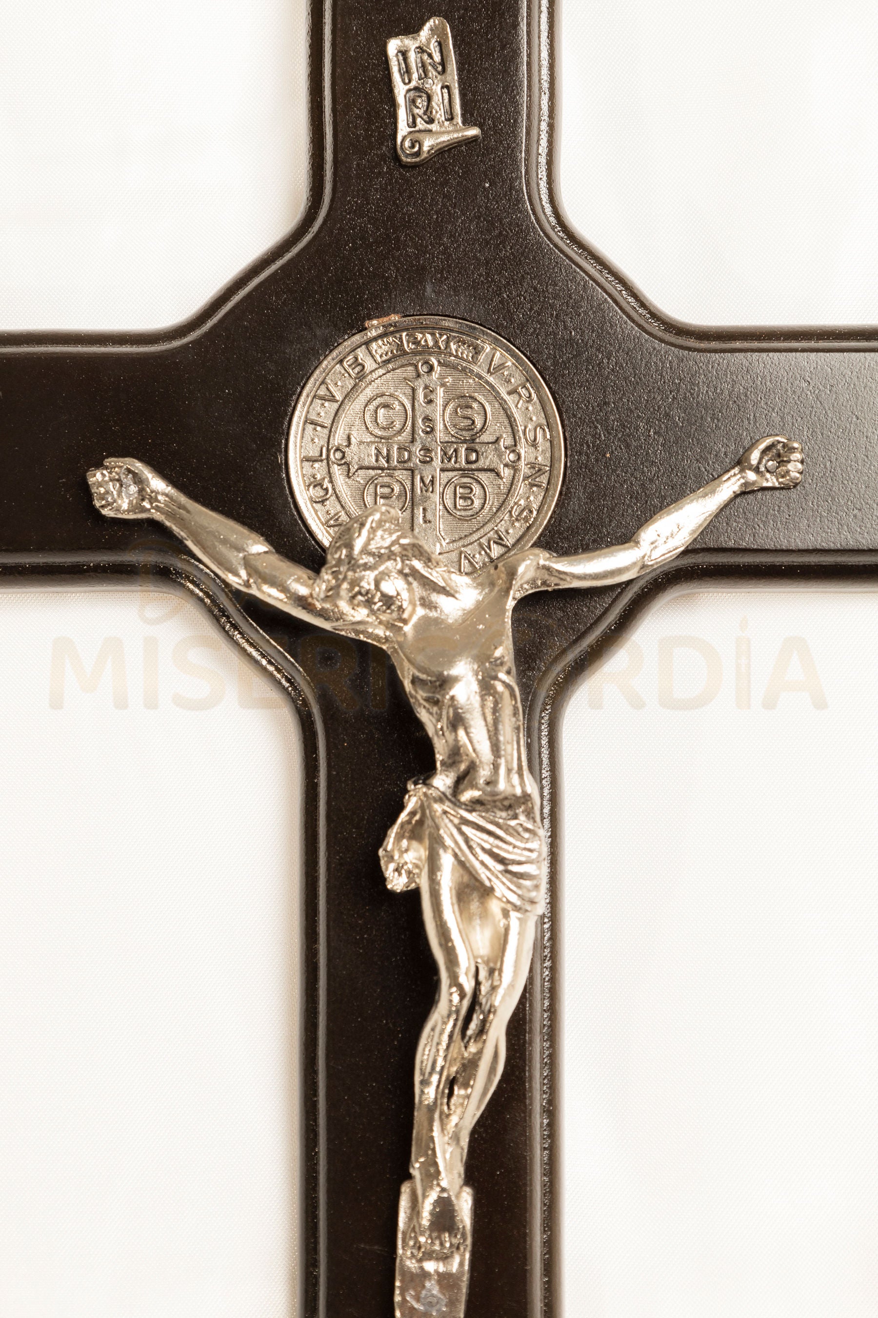 Este crucifijo une la fuerza redentora de la Cruz con el poder espiritual de la Medalla de San Benito, reconocida como defensa contra el mal, la tentación y todo peligro espiritual. Su formato amplio lo convierte en un signo imponente y visible de fe y protección, ideal para altares, capillas, oficinas u hogares donde se quiera mantener presente la fuerza de Cristo y la intercesión de San Benito.