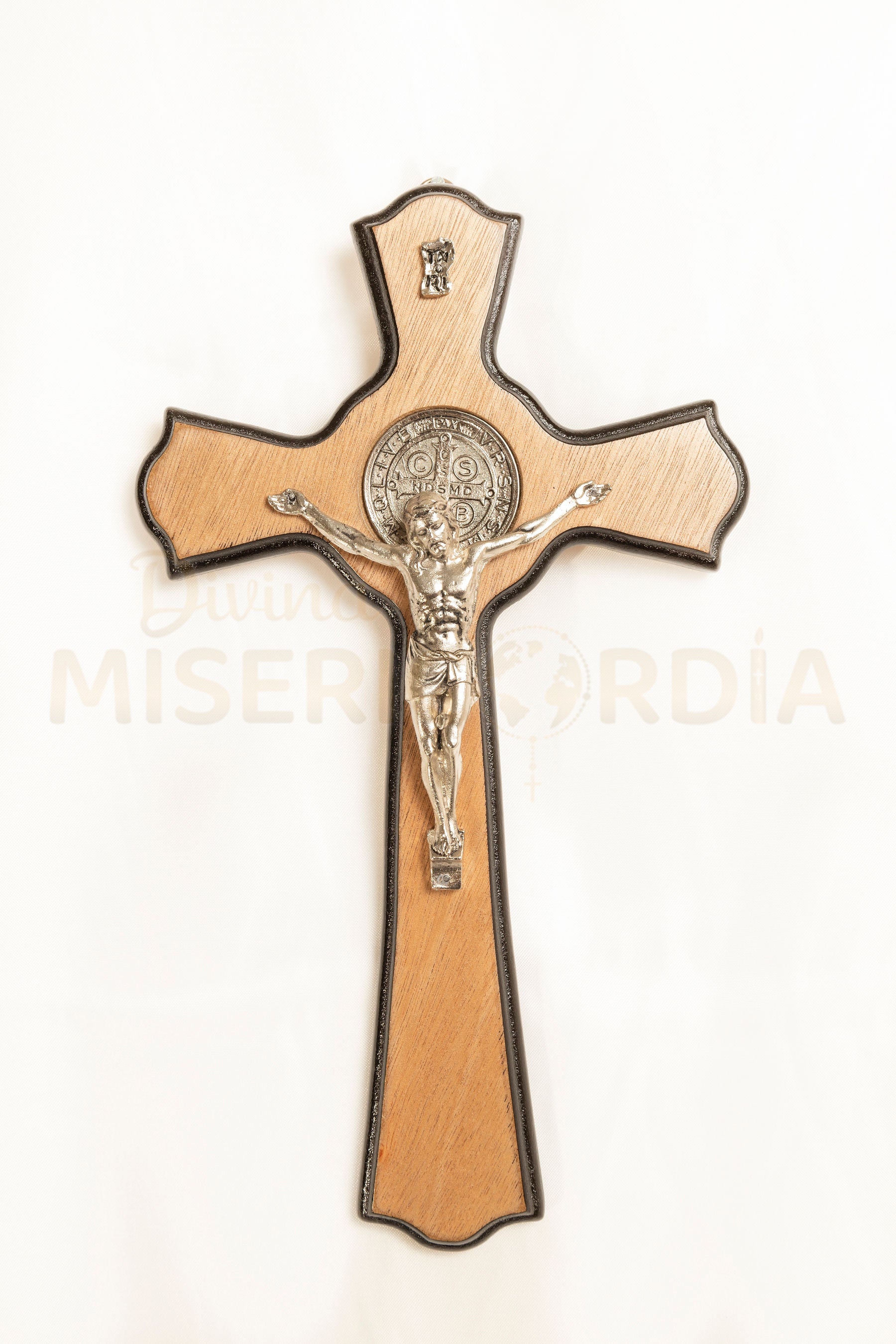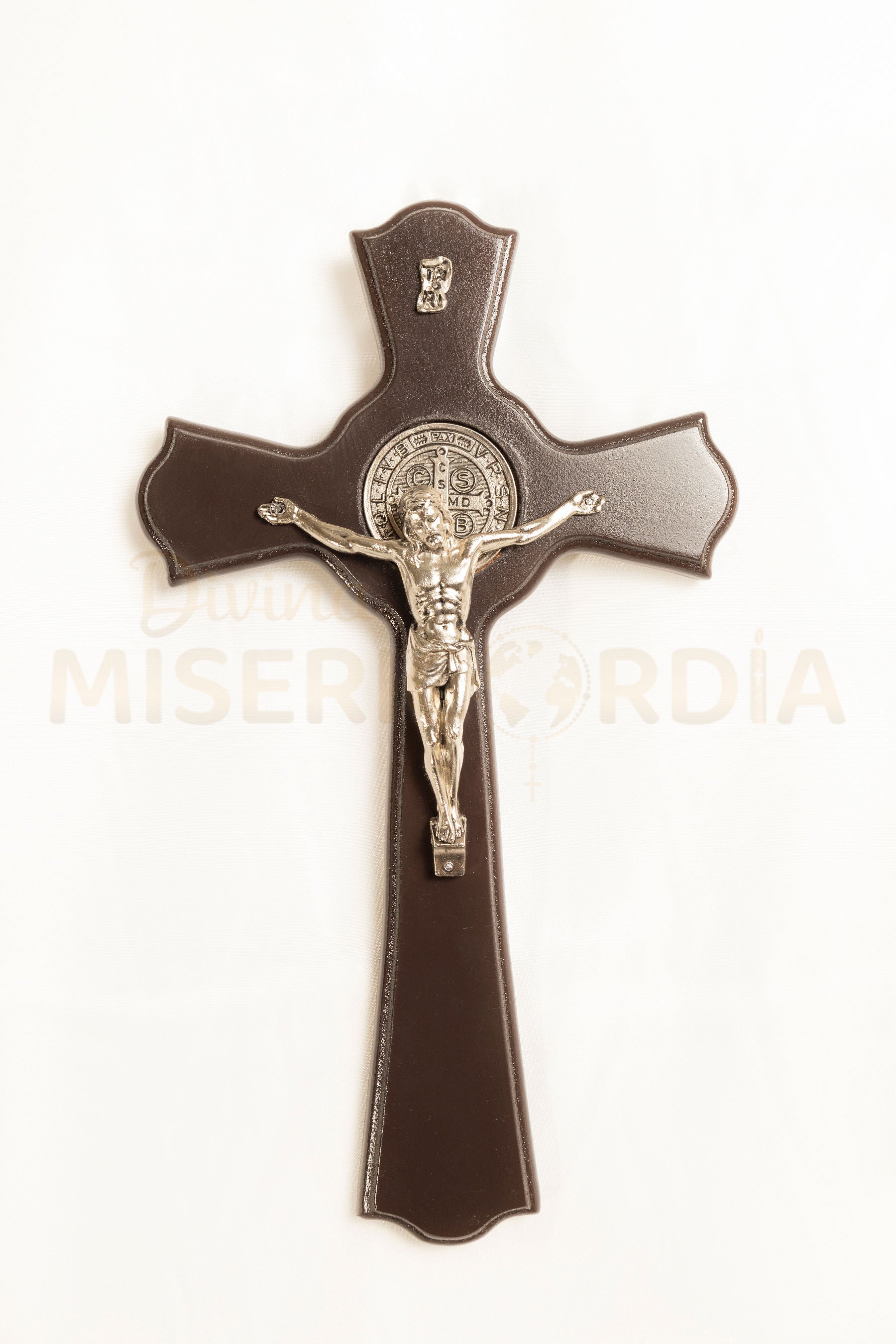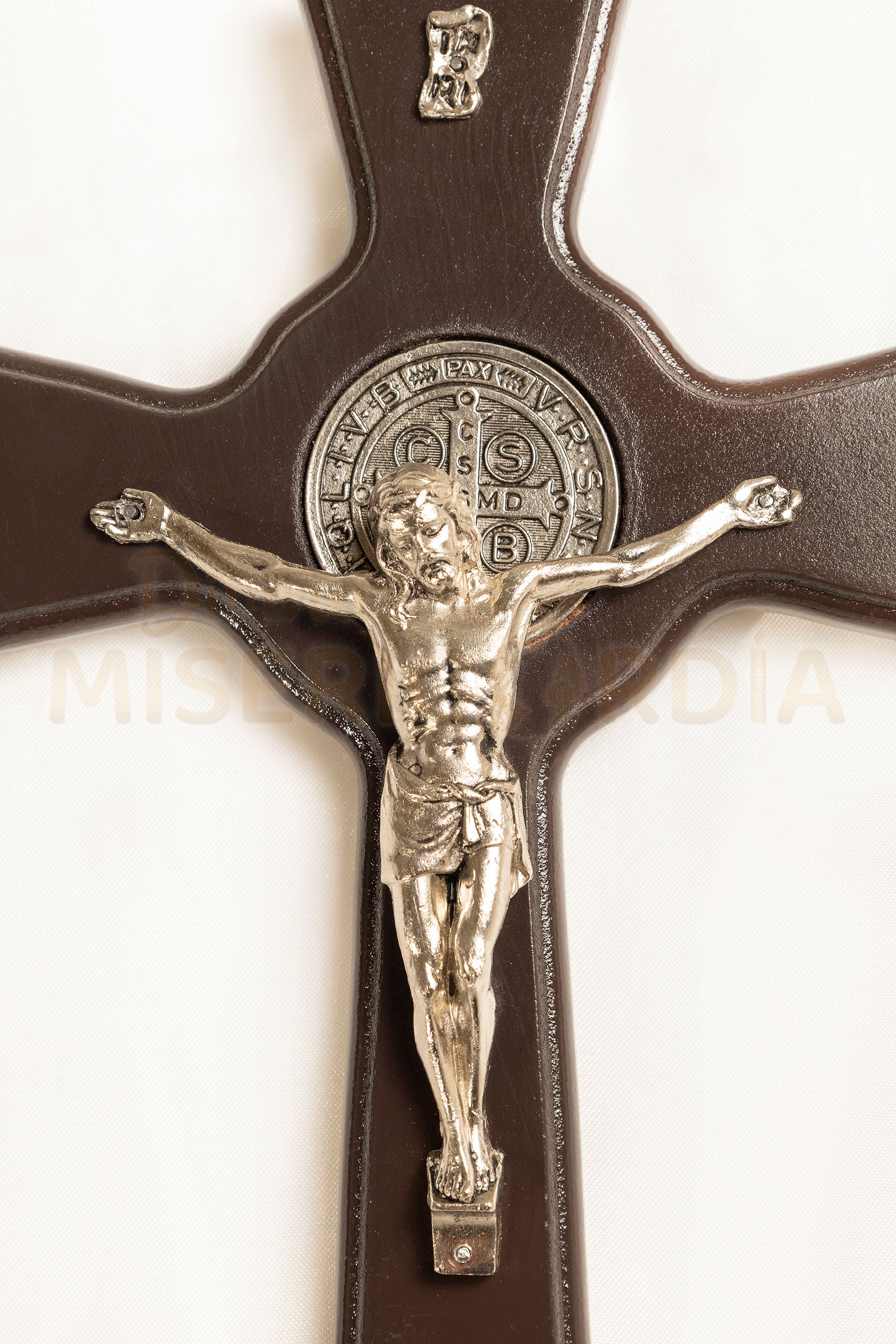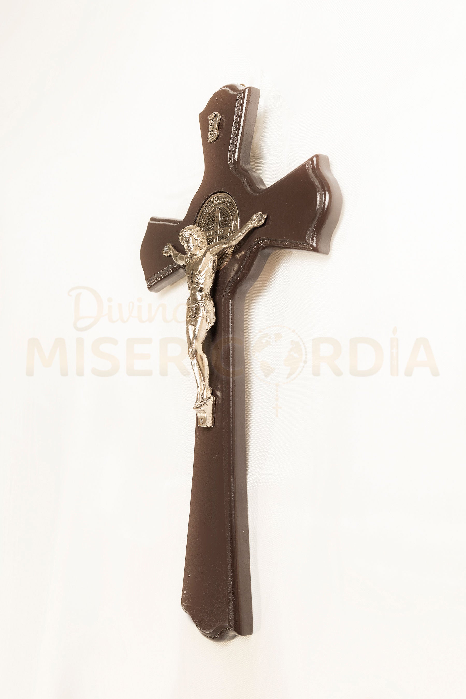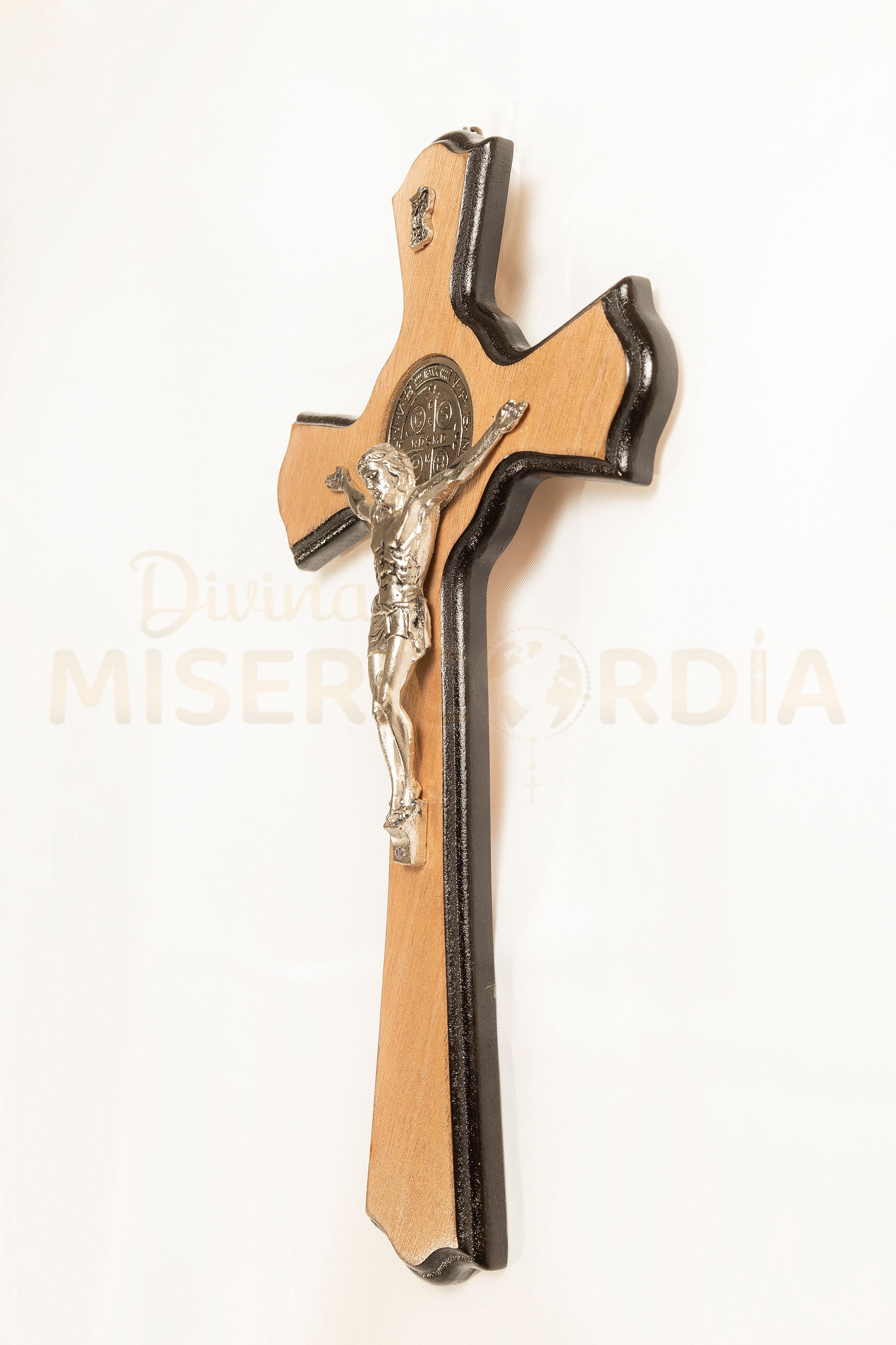 Este crucifijo une la fuerza redentora de la Cruz con el poder espiritual de la Medalla de San Benito, reconocida como defensa contra el mal, la tentación y todo peligro espiritual. Su formato amplio lo convierte en un signo imponente y visible de fe y protección, ideal para altares, capillas, oficinas u hogares donde se quiera mantener presente la fuerza de Cristo y la intercesión de San Benito.