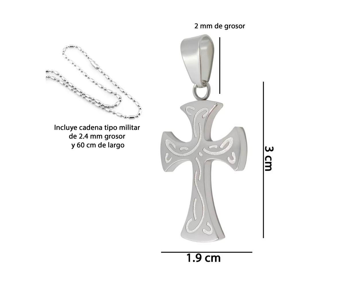 ✨ Dije de Cruz con el Padre Nuestro Grabado – Acero Inoxidable + Cadena de Regalo ✨