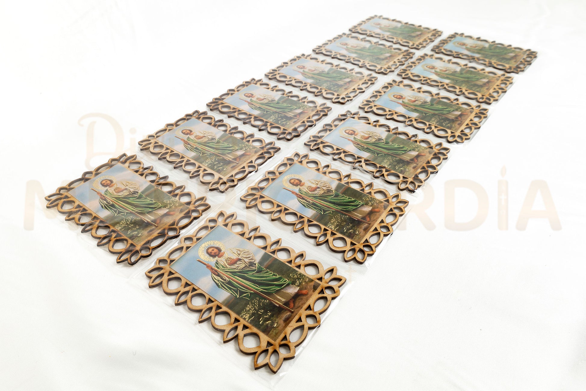 Docena de Cuadritos en MDF Corte Láser con Imagen de San Judas Tadeo (9.5 x 13 cm) ✨🖼️🙏