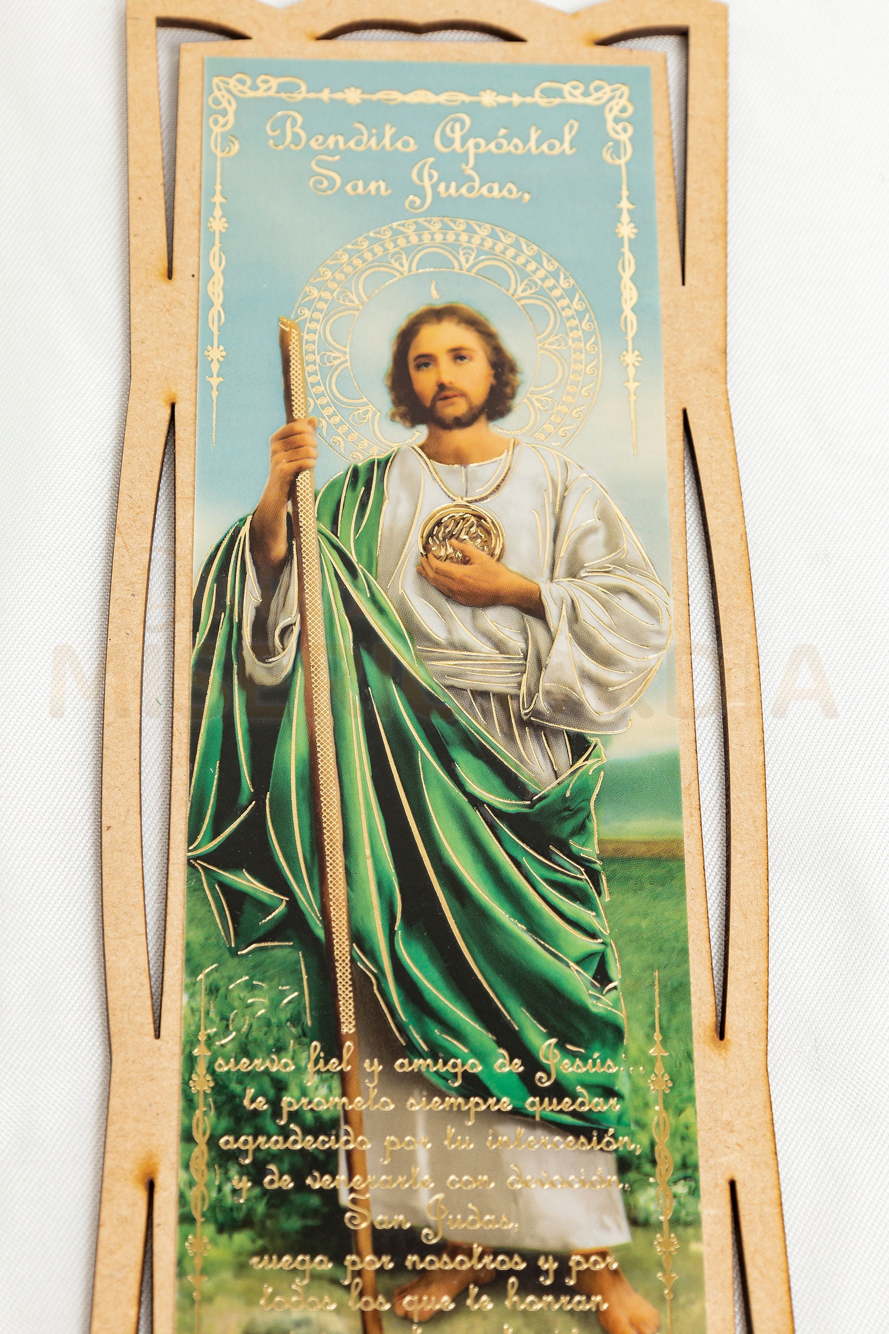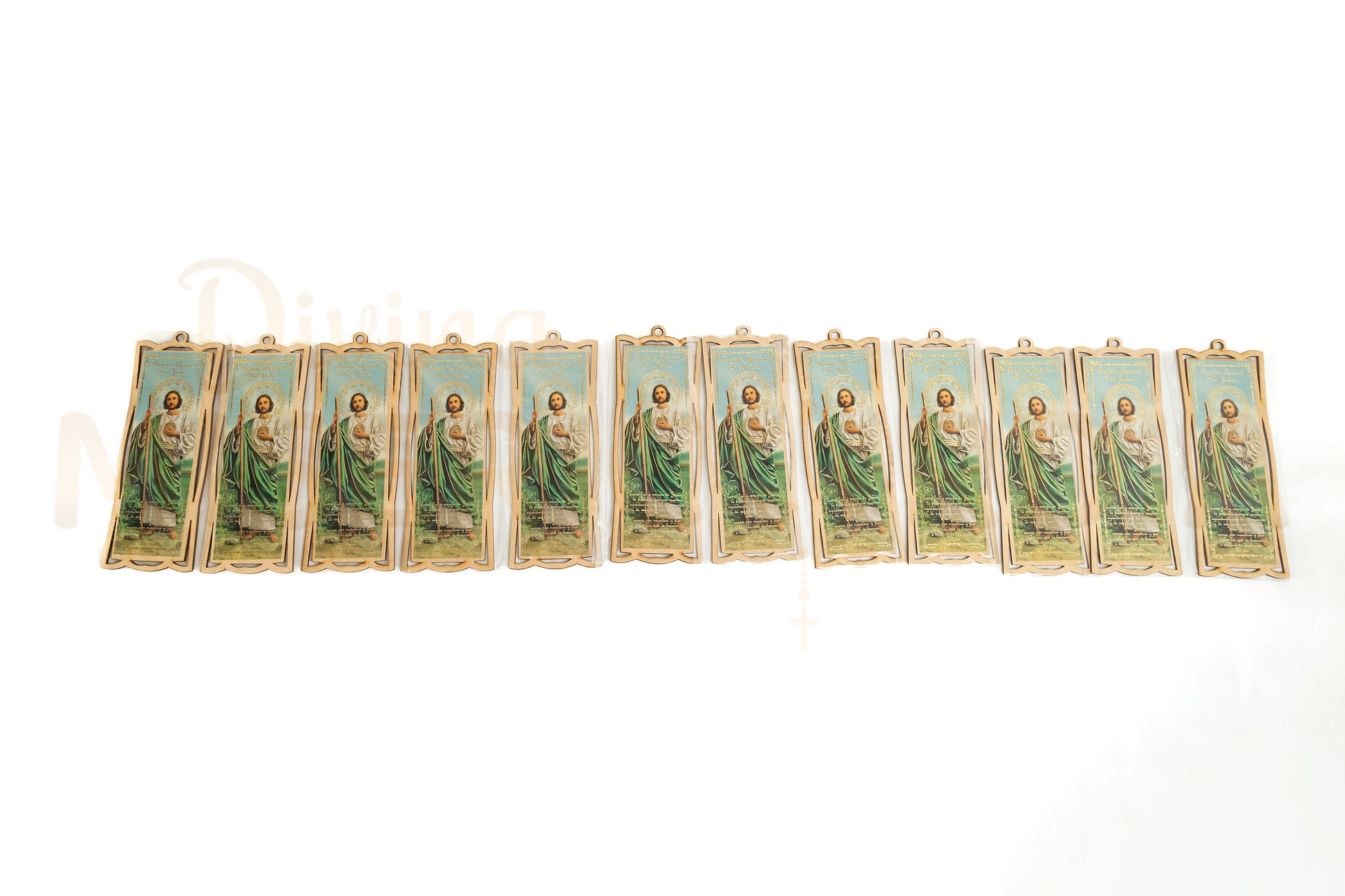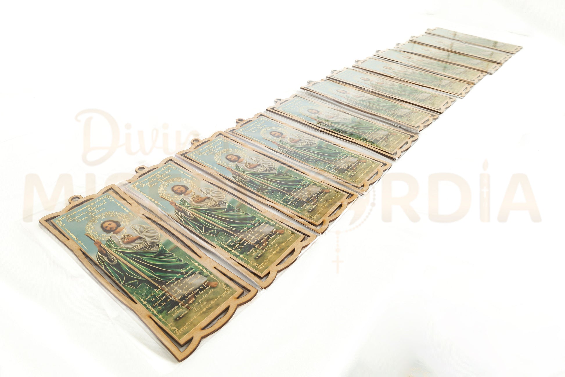Decora y bendice tus espacios con esta docena de retablos tipo separador en MDF, elaborados con corte láser de precisión y con la imagen de San Judas Tadeo, el santo de las causas difíciles. Su formato alargado es ideal para resaltar en hogares, capillas, oficinas o como recuerdo religioso. 🌟