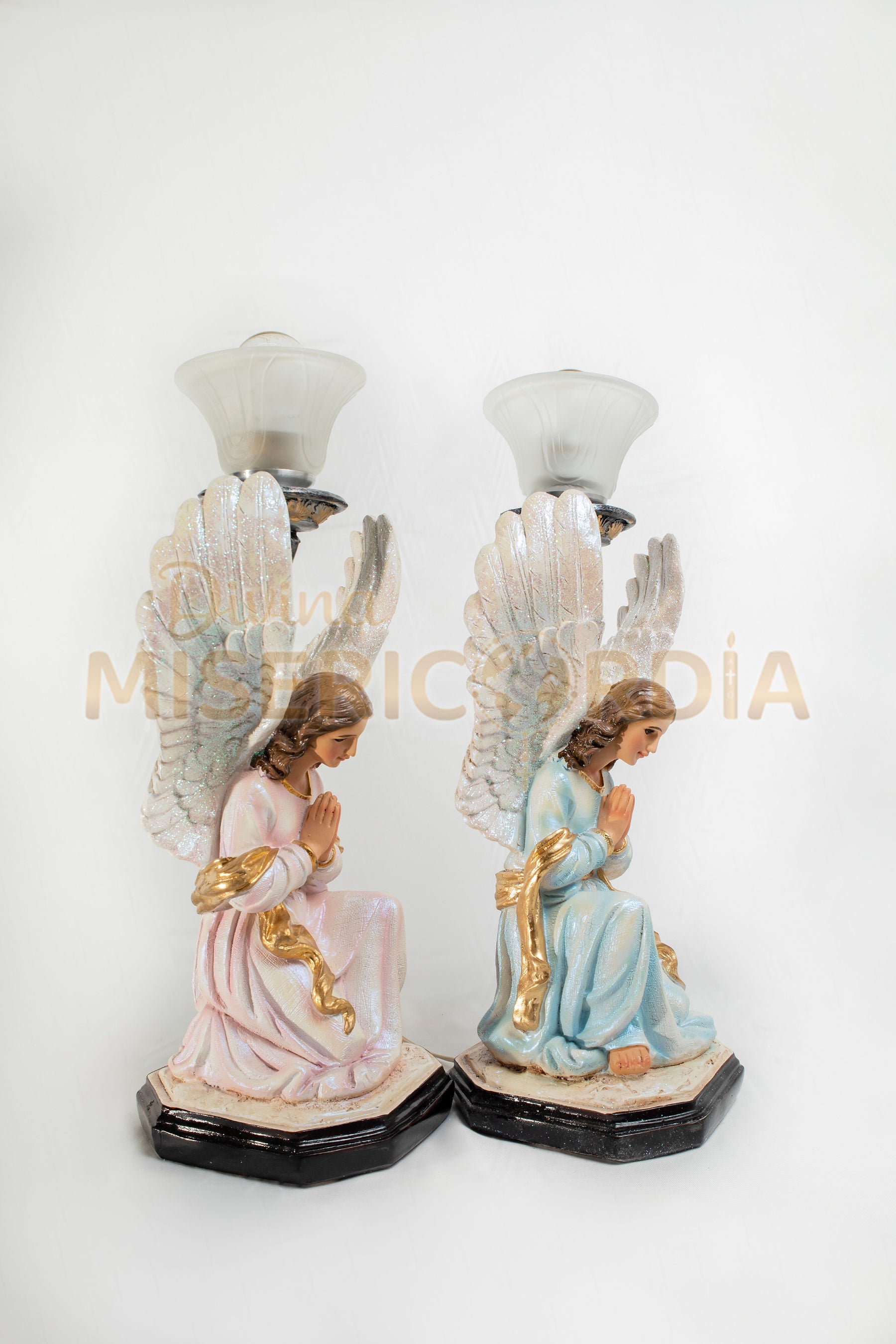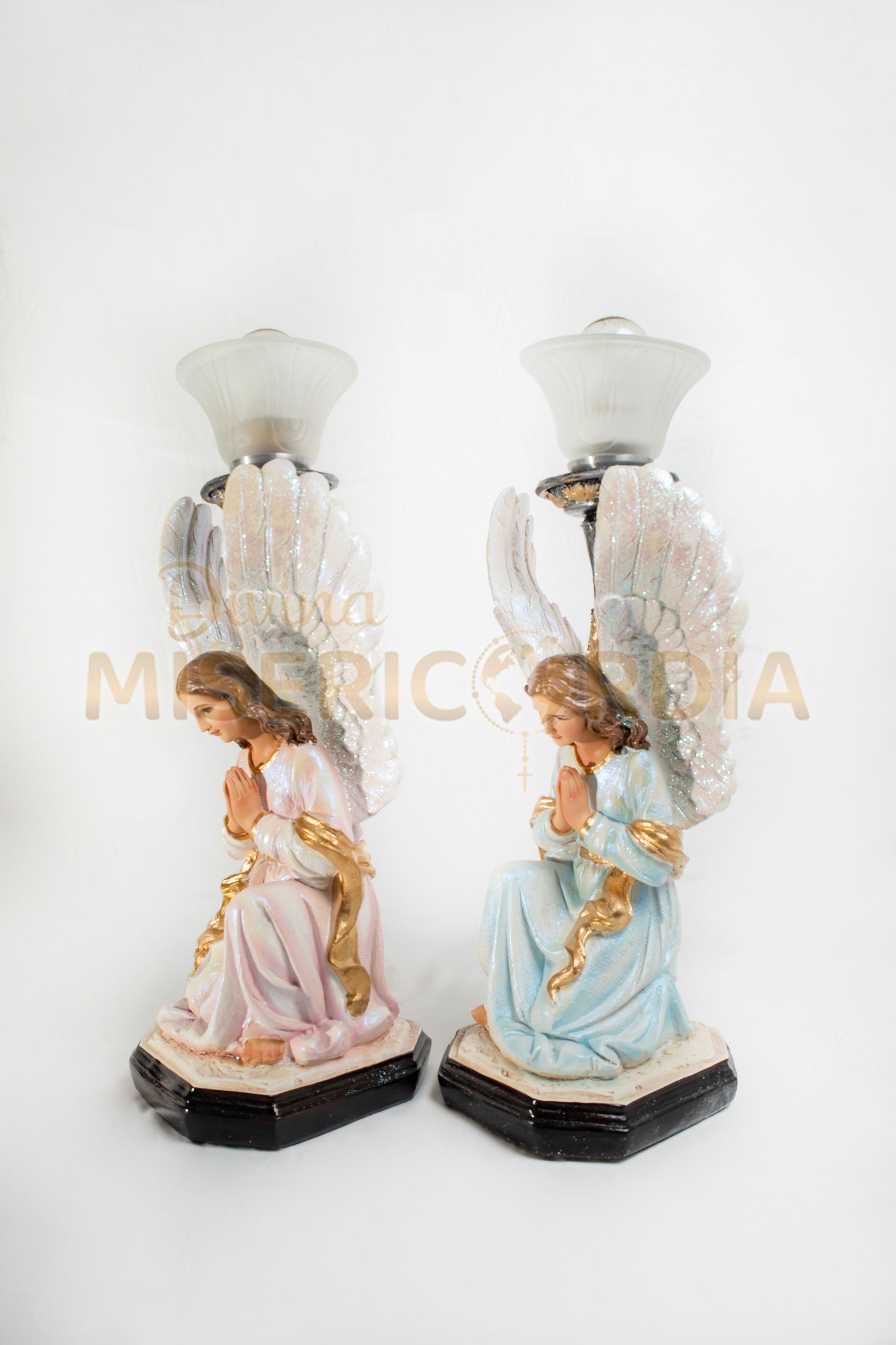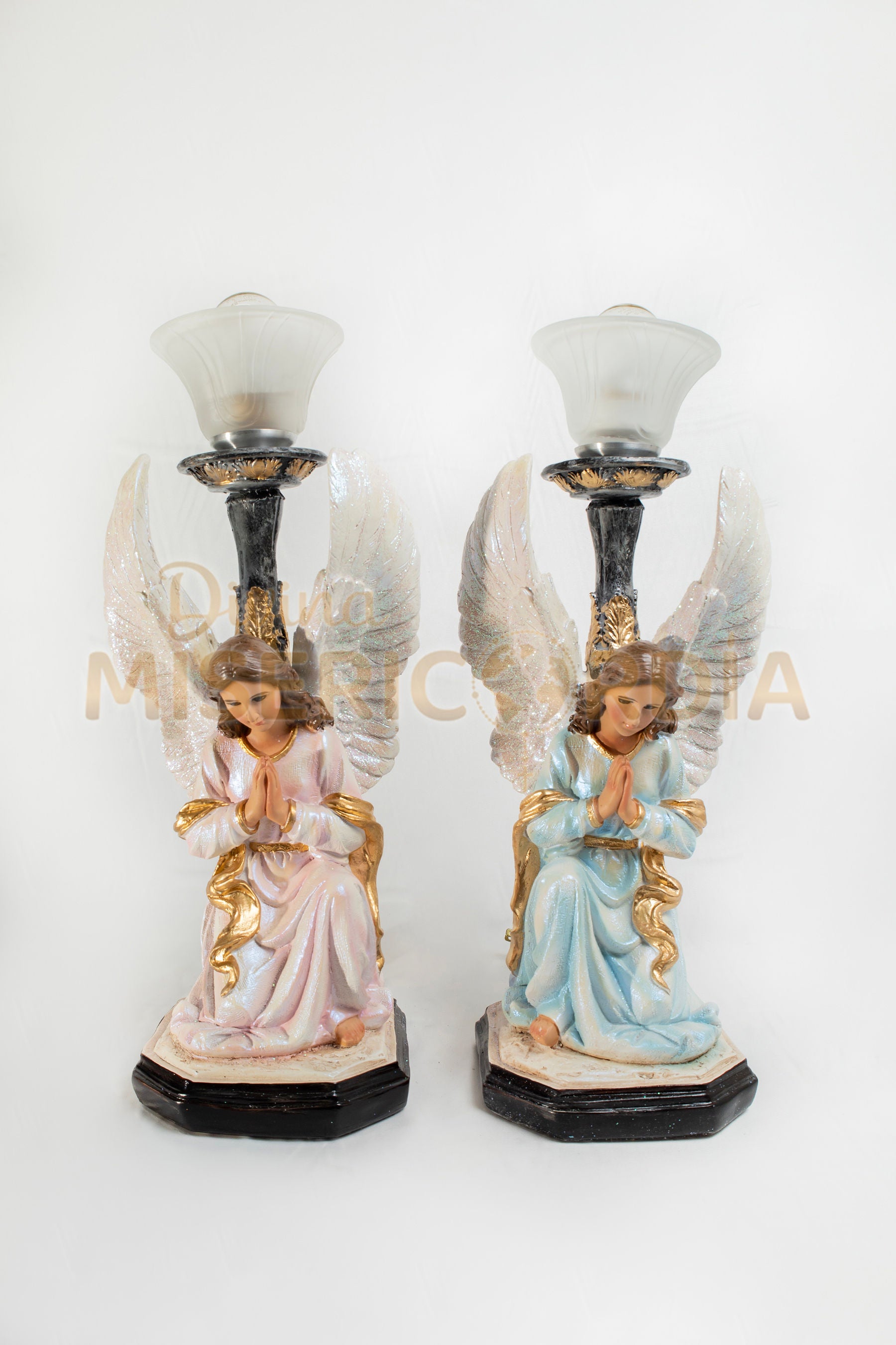💡 Lámpara eléctrica funcional en cada ángel, ideal como luz de oración o compañía espiritual nocturna