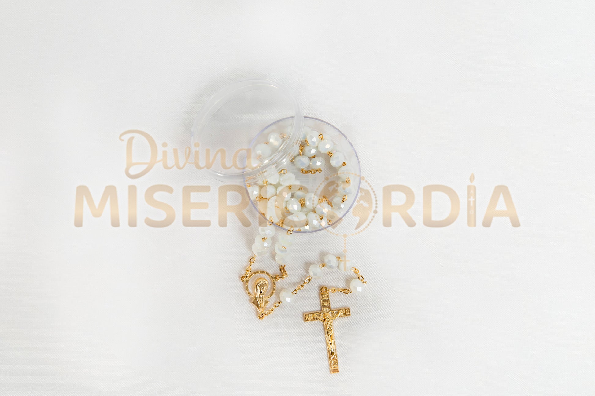 Este rosario está cuidadosamente elaborado con cuentas de cristal cortado color blanco, que reflejan la luz con delicadeza y serenidad. Los engarces metálicos dan firmeza y estilo, mientras que la cruz con Cristo dorado aporta un toque de solemnidad y belleza. Una pieza perfecta para orar, regalar o conservar como tesoro de fe 🙏🌸