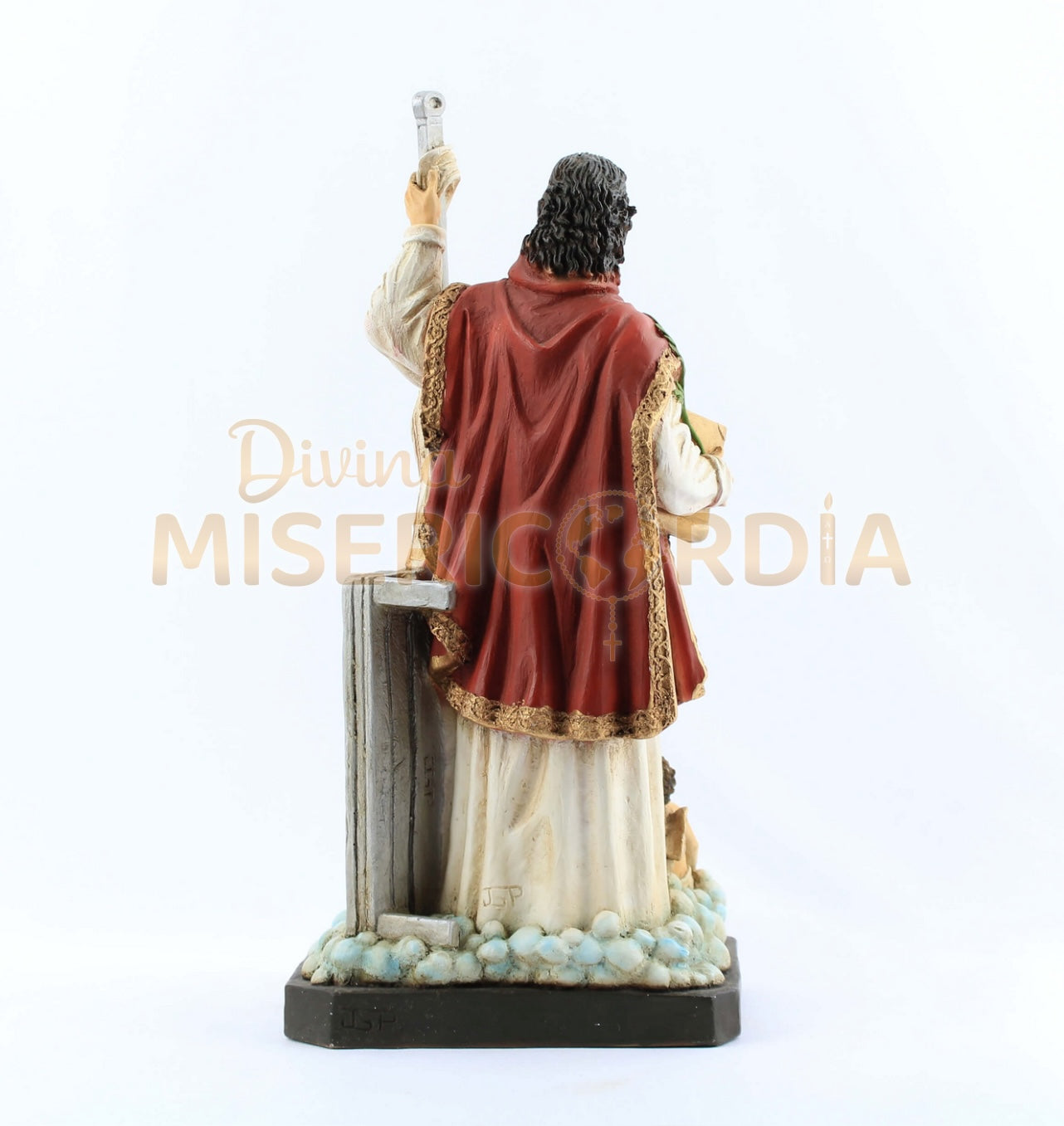 Rinde homenaje a San Lorenzo, el valiente diácono y mártir de la Iglesia, con esta hermosa escultura elaborada en resina de alta calidad. San Lorenzo es conocido por su profunda fe, su servicio a los pobres y su valentía al enfrentar el martirio. Es patrono de los diáconos, los cocineros y los bomberos, y su imagen suele representarlo con una parrilla, símbolo del sacrificio que realizó por amor a Cristo.