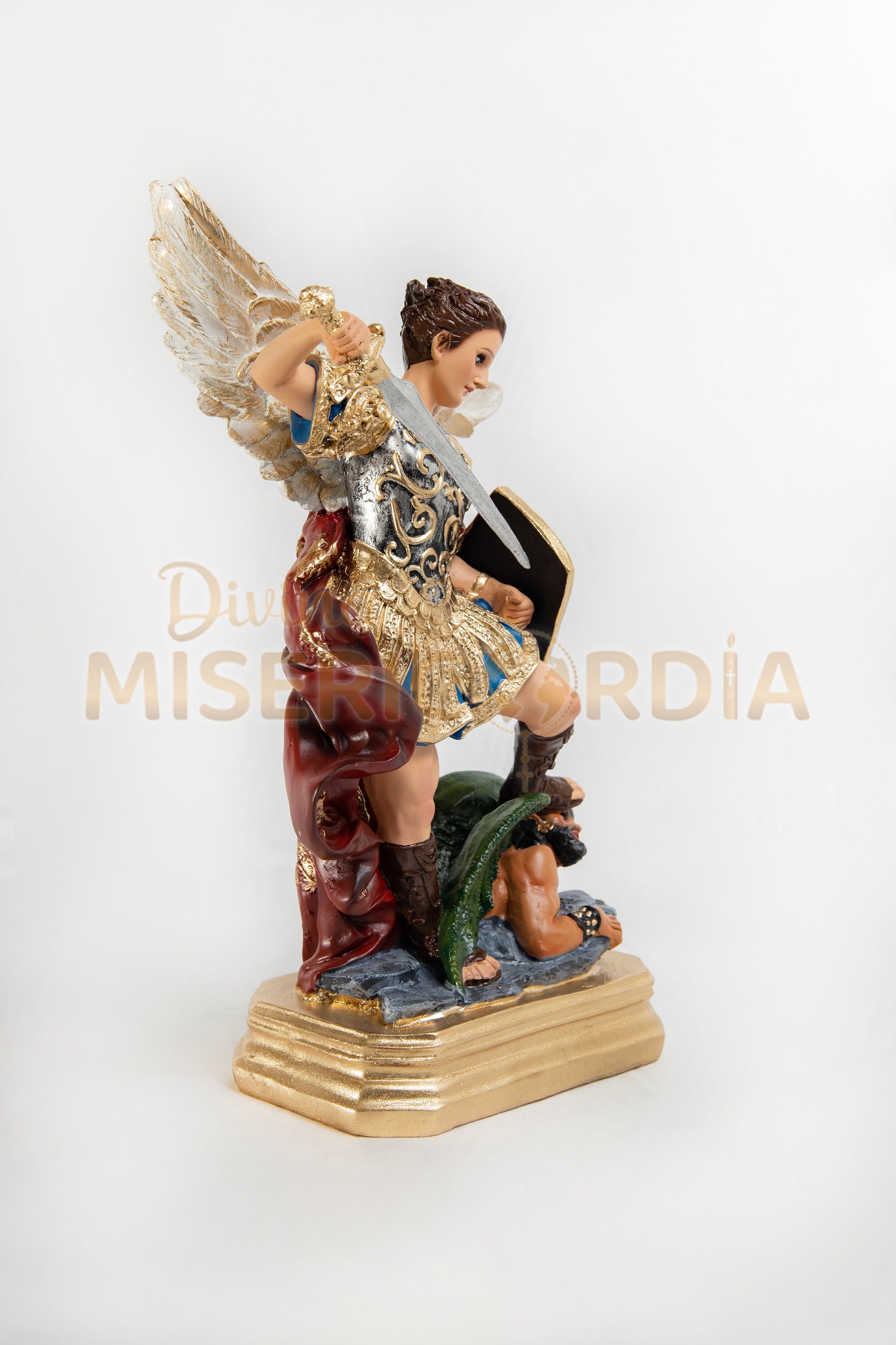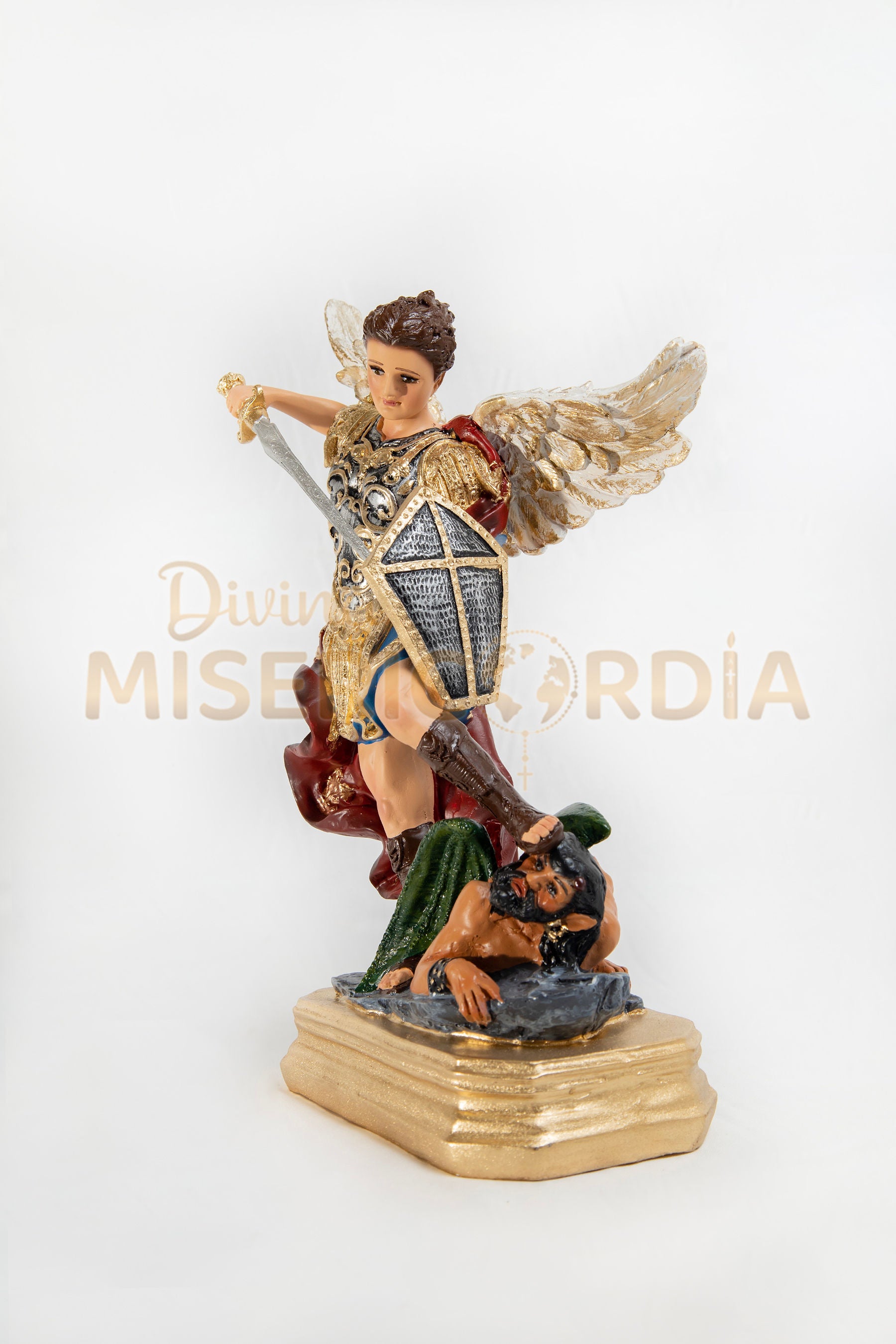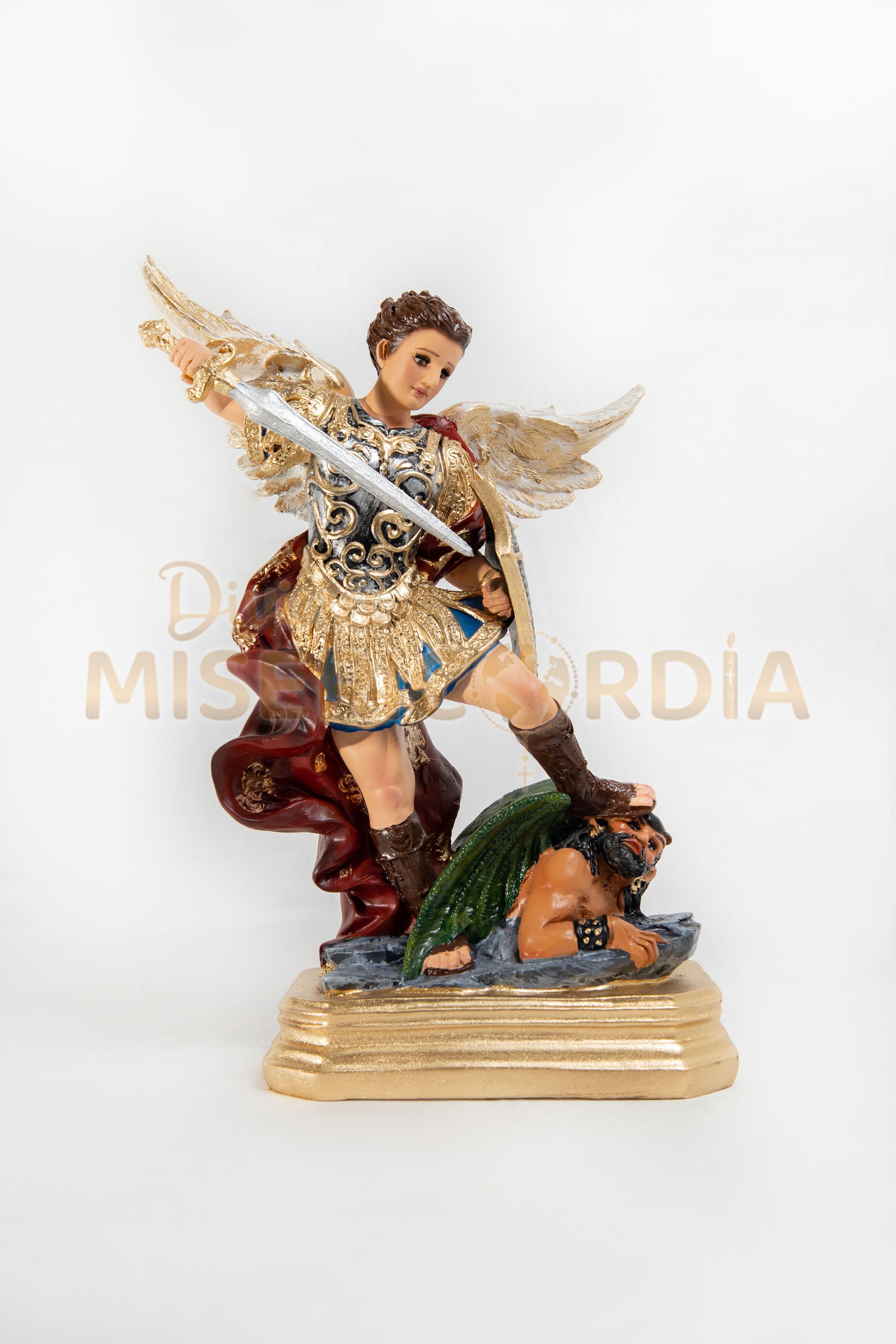 👑 Imponente figura de San Miguel Arcángel, príncipe de los ejércitos celestiales, símbolo de justicia divina, protección y victoria sobre el mal. Representado con armadura, espada y escudo, es el defensor por excelencia contra las fuerzas oscuras y guía firme en la batalla espiritual.