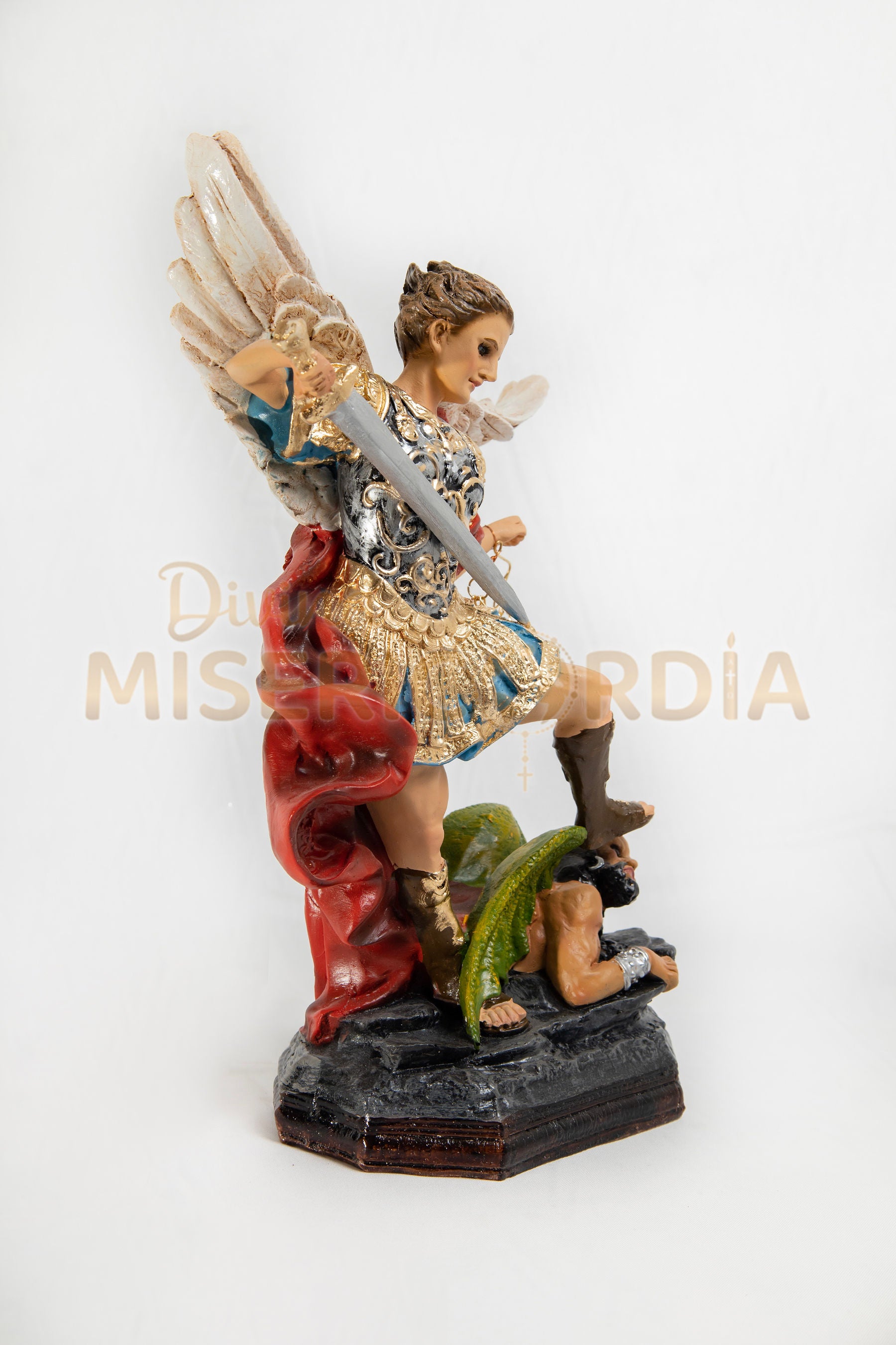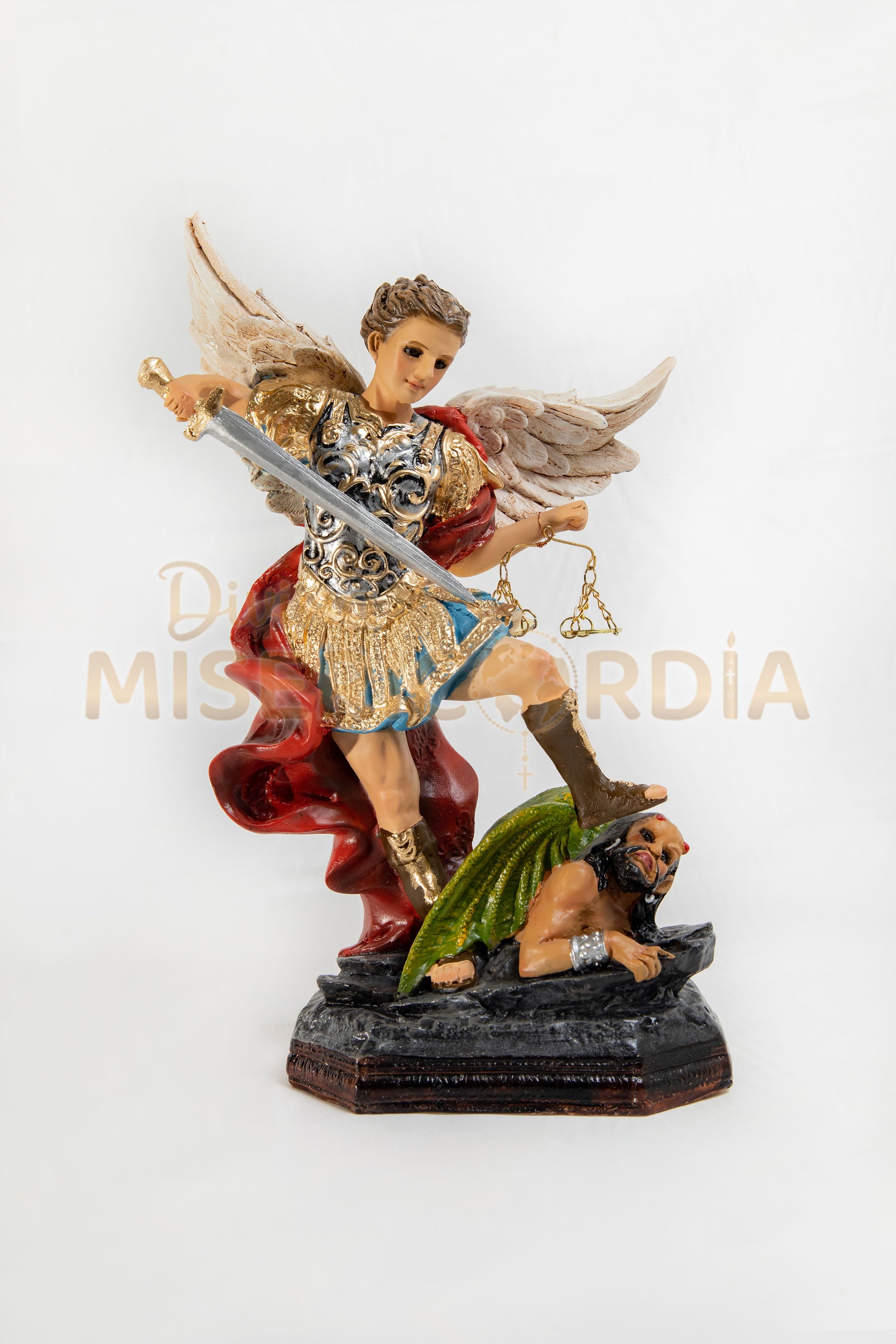 👑 Imponente figura de San Miguel Arcángel, príncipe de los ejércitos celestiales, símbolo de justicia divina, protección y victoria sobre el mal. Representado con armadura, espada y escudo, es el defensor por excelencia contra las fuerzas oscuras y guía firme en la batalla espiritual.