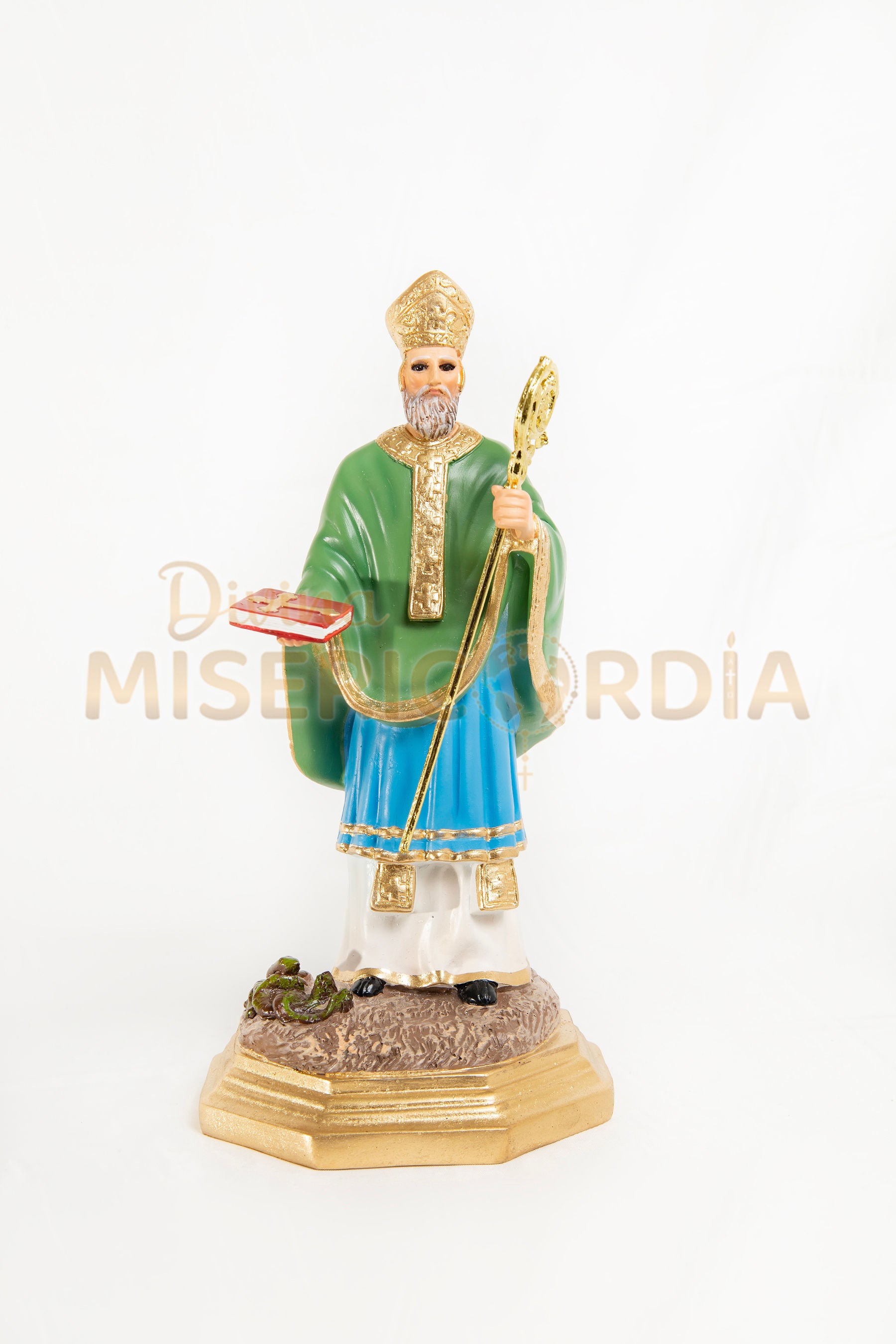 Rinde homenaje a San Patricio, santo patrono de Irlanda y símbolo de fe, protección y evangelización. Esta hermosa escultura, elaborada en resina de alta calidad, representa su compromiso con la difusión del cristianismo y su poderosa intercesión para alejar el mal y proteger a sus devotos.