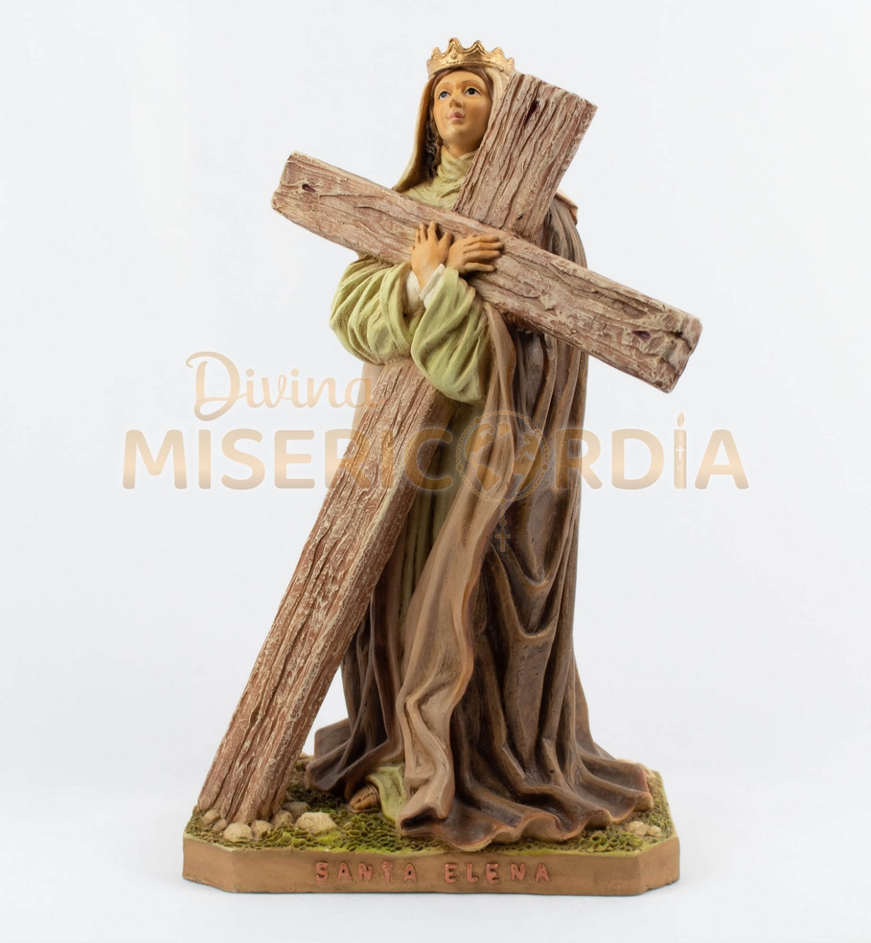 Rinde homenaje a Santa Elena de la Cruz, la santa emperatriz que dedicó su vida a la fe y al descubrimiento de la Santa Cruz, con esta hermosa escultura elaborada en resina de alta calidad. Santa Elena es reconocida por su gran devoción al cristianismo y por haber encontrado la verdadera Cruz en la que fue crucificado Jesucristo, convirtiéndose en un símbolo de esperanza y fe inquebrantable.