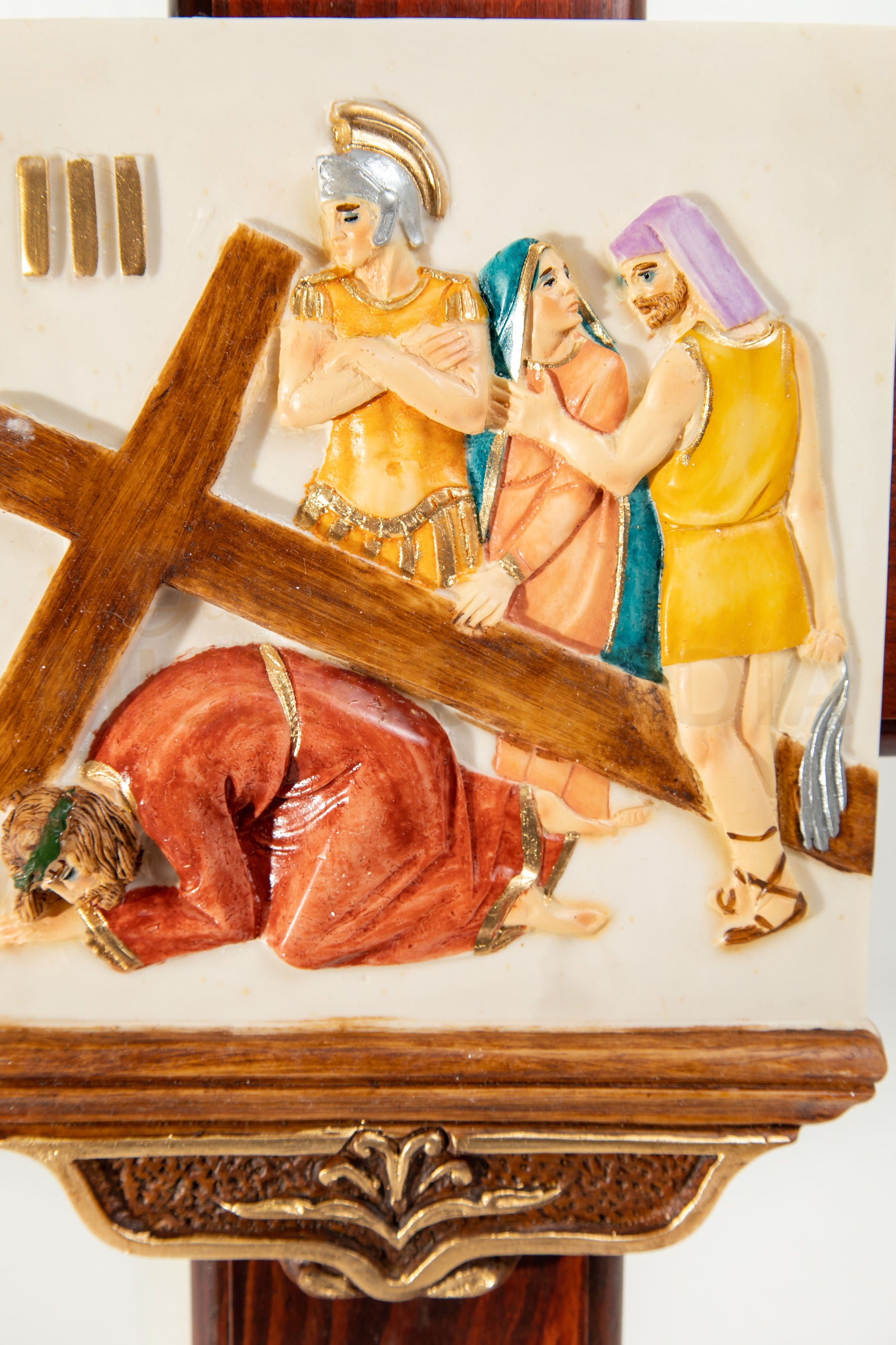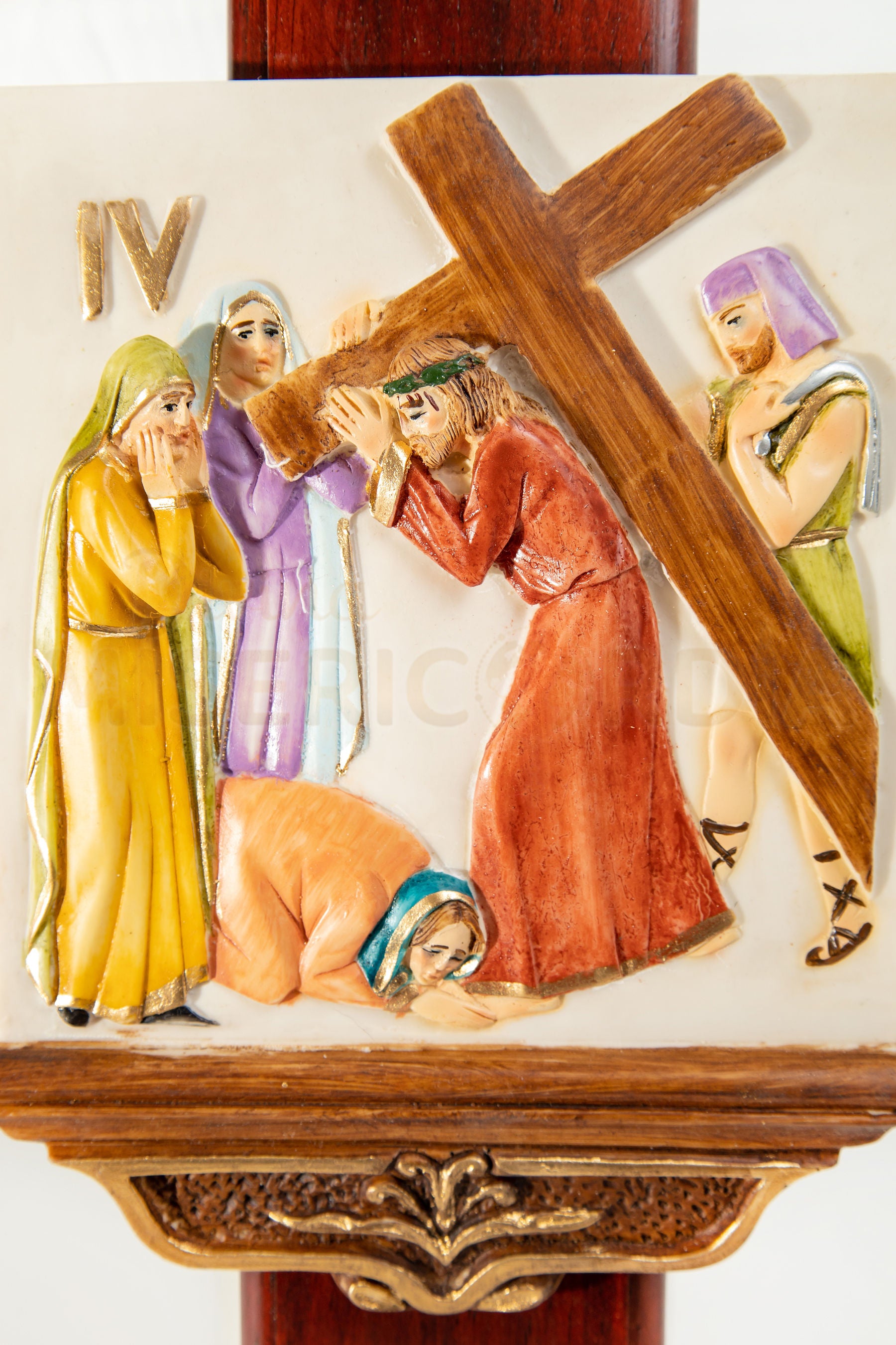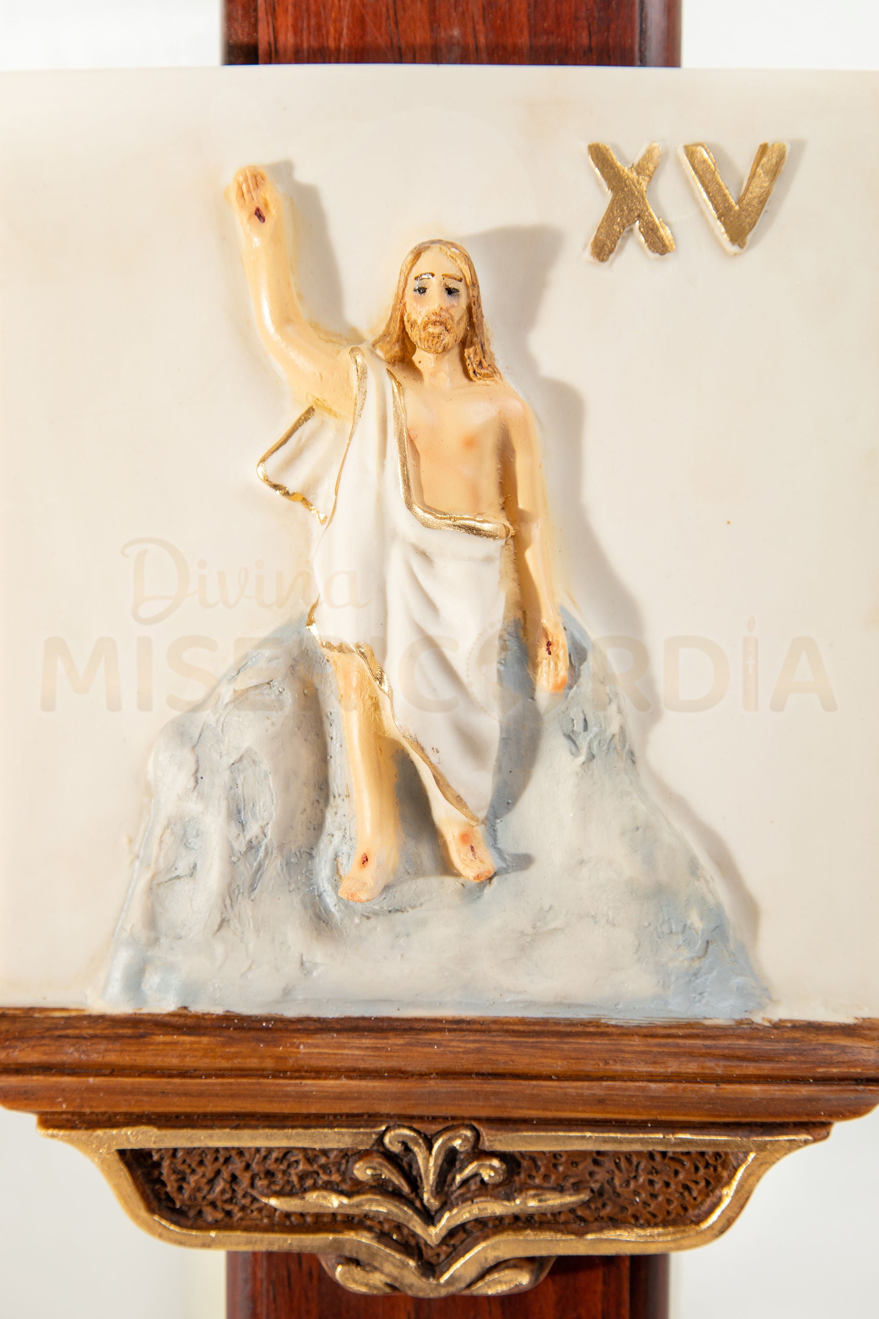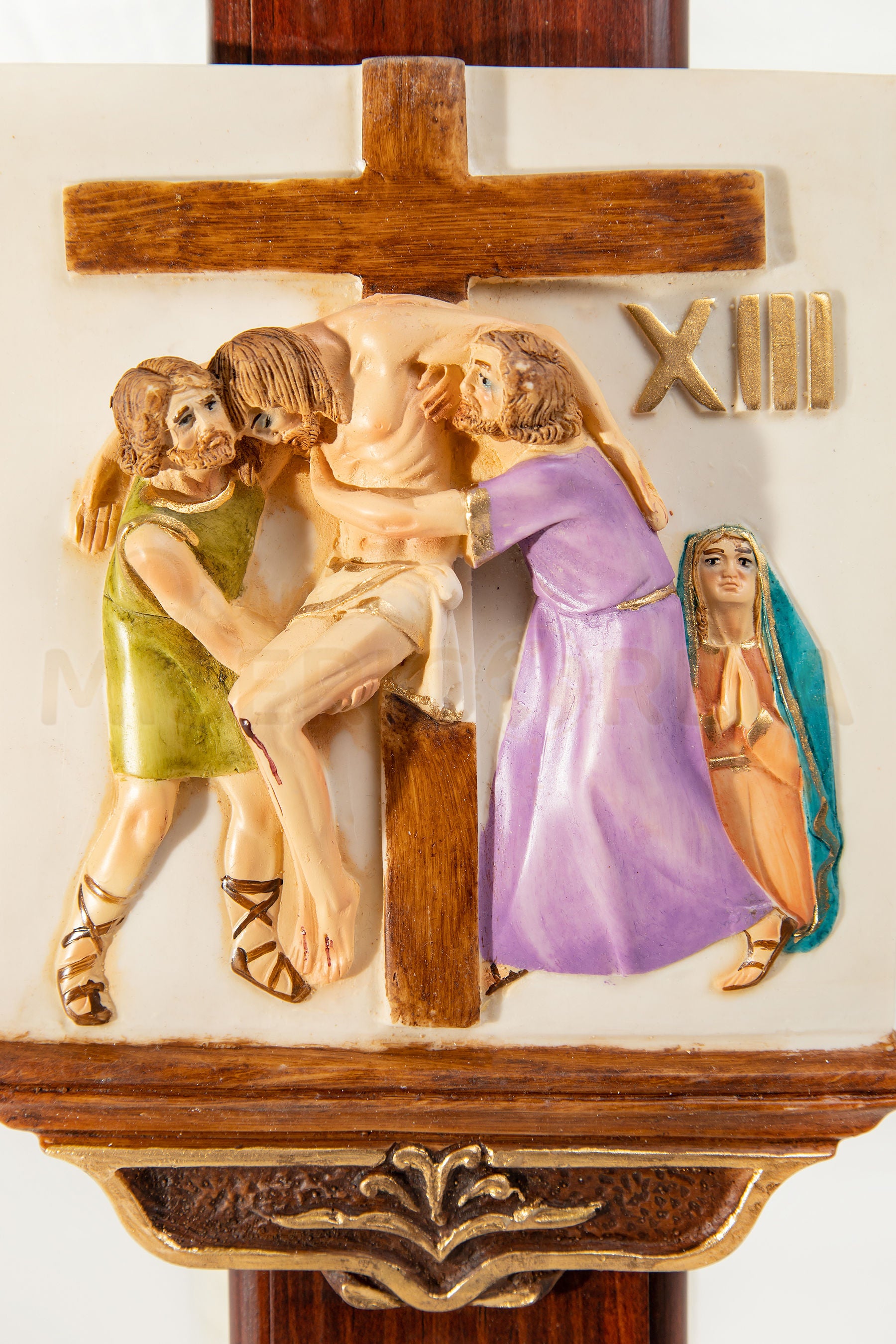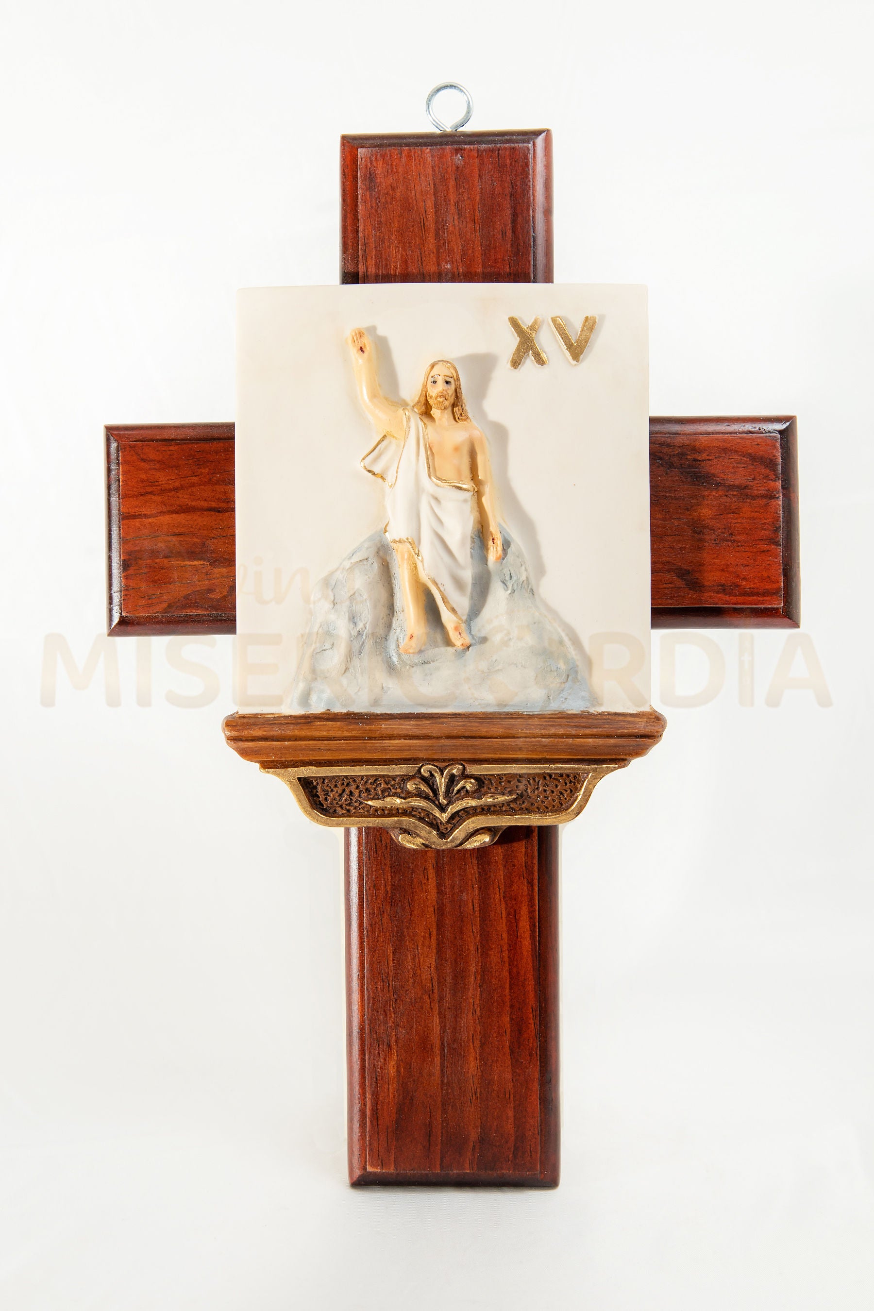 Vive con fe y devoción el camino de Jesús hacia el Calvario con este conjunto de 15 cruces, cada una representando una Estación del Vía Crucis. Elaboradas en un hermoso retablo de polvo de alabastro, montado sobre una cruz de madera de alta calidad, son piezas llenas de espiritualidad y significado.