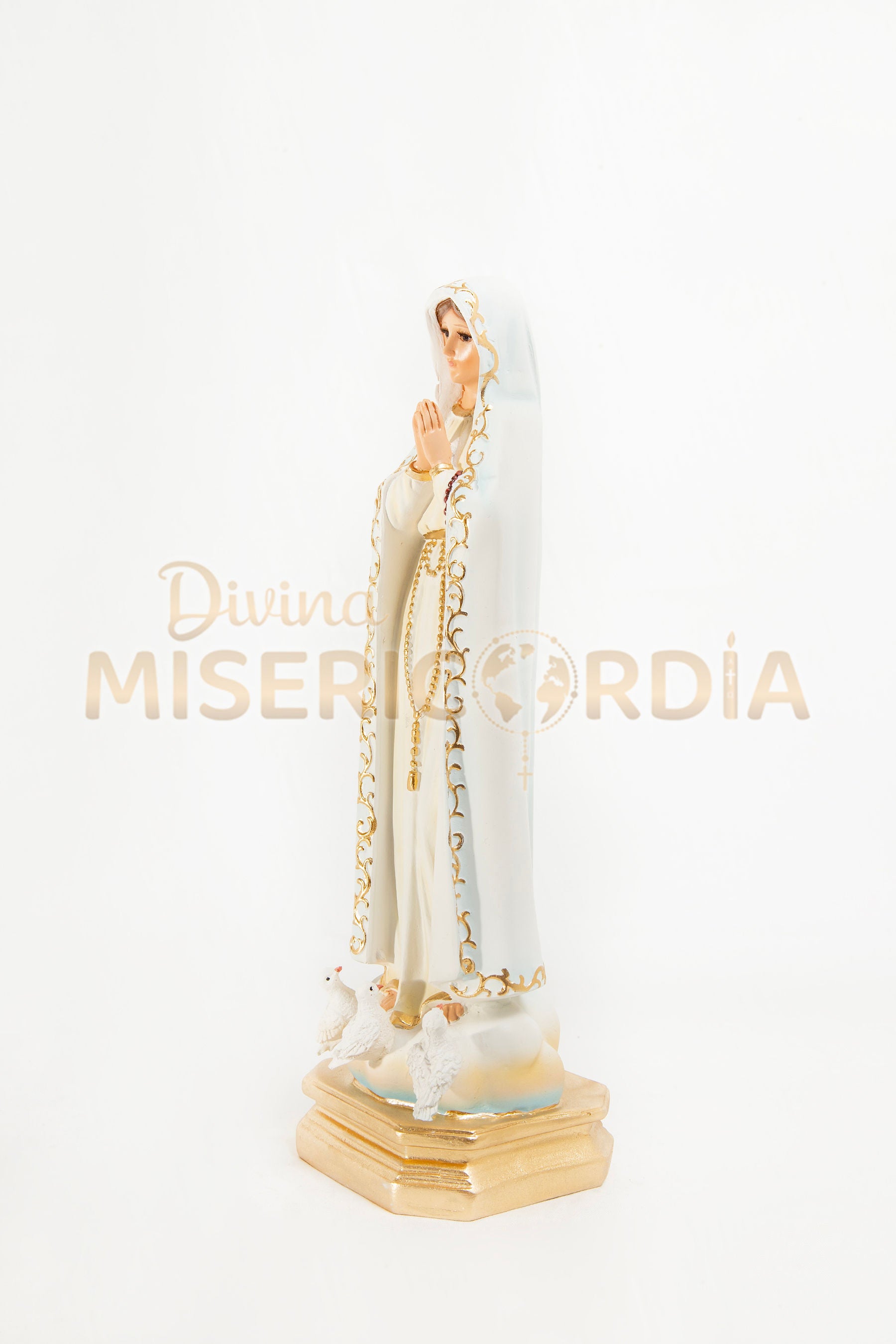La Virgen de Fátima es una de las advocaciones marianas más queridas y veneradas en el mundo. Esta versión, acompañada por palomas, símbolos universales de paz y pureza, resalta el llamado maternal a la conversión, la oración y la esperanza.