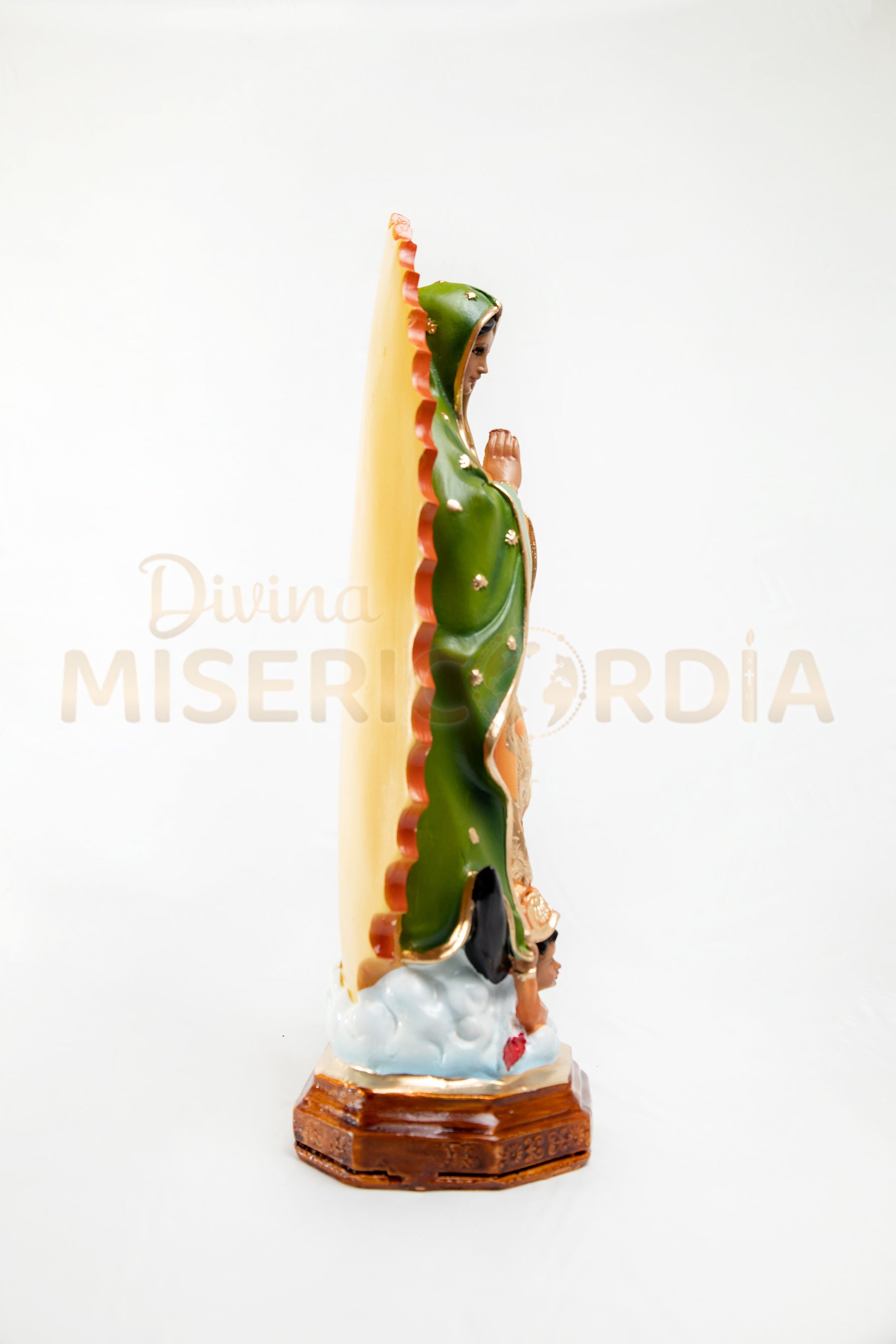 💫 Incluye su manto verde con estrellas doradas y base con rayos dorados al estilo original de la tilma