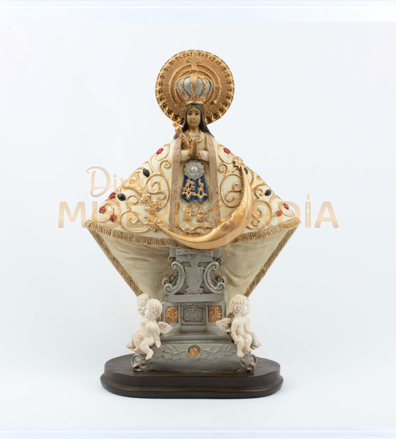 Esta hermosa imagen de la Virgen de Zapopan representa a nuestra Madre celestial en su advocación como protectora de todos los fieles. Elaborada en resina sólida de alta calidad, su diseño refinado y lleno de detalles transmite la paz, el consuelo y la fortaleza que solo la Virgen de Zapopan puede ofrecer. Esta imagen es perfecta para quienes buscan refugiarse bajo su manto sagrado.