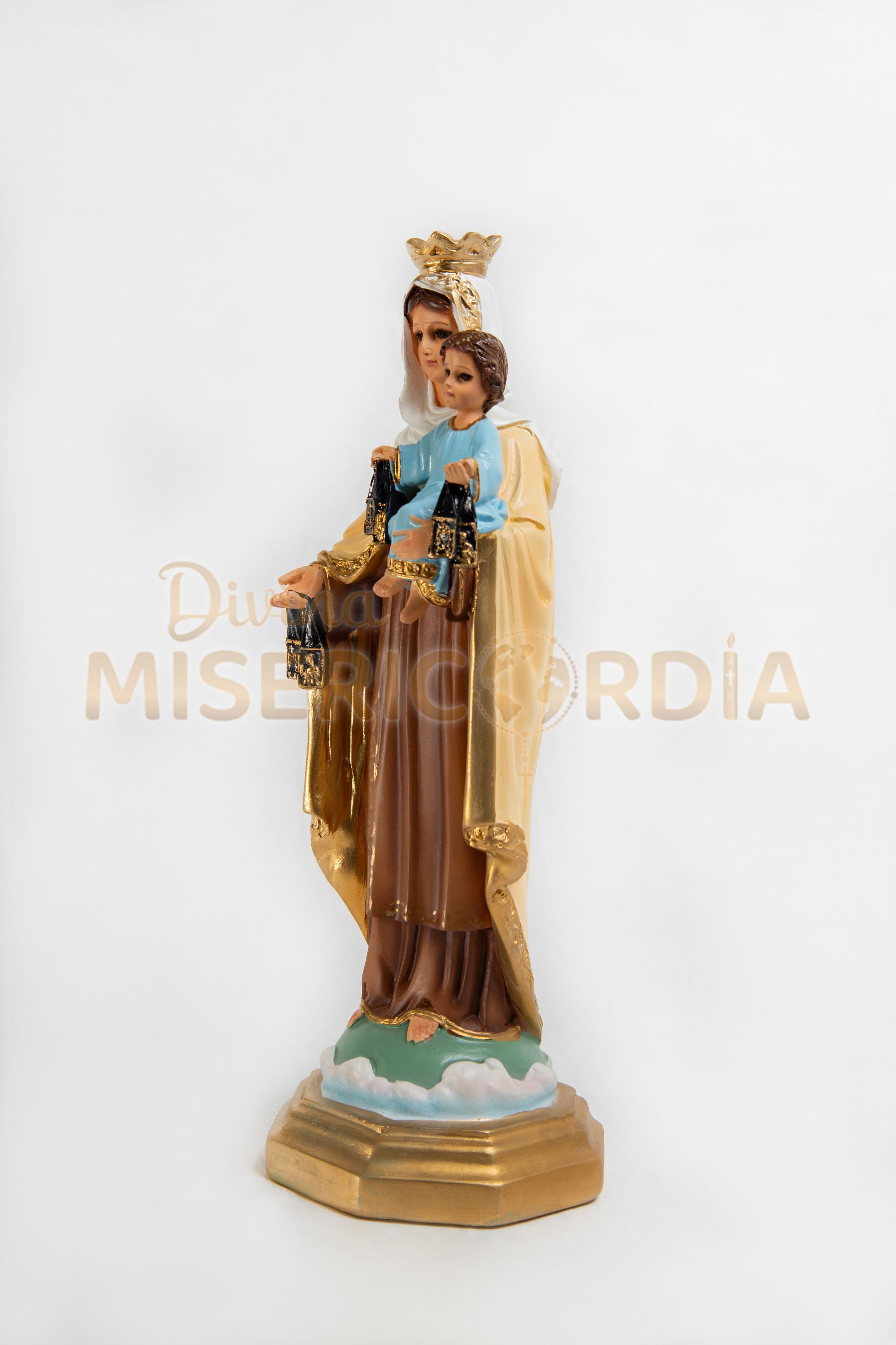 👑 Bella y significativa imagen de la Virgen del Carmen, patrona del mar, de las almas del purgatorio y protectora de quienes llevan el escapulario con fe. Su mirada serena y su manto acogedor son refugio para quienes buscan consuelo, protección y dirección espiritual.